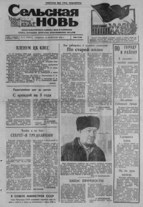 ПРОЛЕТАРИИ ВСЕХ СТРАН, СОЕДИНЯЙТЕСЬ! Сельская Шна-НОВЬ ОРГАН КАРАСУКСКОГО РАЙКОМА КПСС И РАЙОННОГО СОВЕТА НАРОДНЫХ ДЕПУТАТОВ НОВОСИБИРСКОЙ ОБЛАСТИ Газета основана 2 октября 1930 т. № 21 (7068) СУББОТА, 20 ФЕВРАЛЯ 1988 г. Цена 3 коо ФЛАГ ТРУДОВОЙ СЛАВЫ поднят в честь звена ов цеводов колхоза нм. Ленина, возглавляемого Н. А. ЬА- ТИЕНКО, получающего по 110 ягнят от сотни маток. ПЛЕНУМ ЦК КПСС 17 — 18 февраля 1988 года состоялся очередной Пленум Центрального Комитета КПСС. Пленум рассмотрел вопрос «О ходе перестройки средней и высшей школы н задачах партии по ее осуществлению». С докладом по этому вопросу выступил член Политбюро, секретарь ЦК КПСС Е. К. Лигачев. 18 февраля с большой речью на Пленуме выступил Гене ральный секретарь ЦК КПСС М. С. Горбачев. Пленум принял по обсуждавшемуся вопросу развернутое постановление, которое будет опубликовано в печати. Пленум принял по выступлению т. Горбачева М. С. поста новление, которое будет опубликовано в печати. На Пленуме рассмотрены организационные вопросы. Пленум избрал т. Маслюкова Ю. Д. кандидатом в члены Политбюро ЦК КПСС. Пленум избрал секретаря ЦК КПСС т. Разумовского Г. П. кандидатом в члены Политбюро ЦК КПСС. Пленум избрал секретарем ЦК КПСС т. Бакланова О. Д. Пленум освободил т. Ельцина Б. Н. от обязанностей канди дата в члены Политбюро ЦК КПСС. (ТАСС) Перестройка: шаг за шагом С арендой на 3 года Активно ведут подготовку к очередному полевому сезону земледельцы Калачинского сов хоза. Нынче возделыванием зерновых культур в крупней шем хозяйстве района будут заниматься десять хозрасчет ных звеньев. Определены их составы, техническая оснащен ность, разработаны технологи ческие карты, заканчивается заключение договорных обяза тельств. Среди хозрасчетных подраз делений одно звено на семей ном подряде, созданное на Ивановском отделении. В него Человек и его дело СЕКРЕТ-В ТРУДОЛЮБИИ Хороший коллектив доярок подобрался на Троицкой фер ме совхоза им. Дзержинского. Давней его мечтой было до биться трехтысячного надоя молока от коровы. Еще 5 лег назад он составлял 2300 кг по бригаде, а сейчас уже свыше 2700. А доярки Н. С. Руденок и П. П. Калмыкова в прошлом году перешагнули трехтысяч ный рубеж. Я поинтересовался у Нины Сергеевны, как ей это уда лось. — Никакого секрета в этом нет, — сказала она. — Глав ное в нашем деле — трудолюбие, особый подход к каждому жи вотному. Начали с оздоровле ния стада, его омолаживания. Раньше много было яловых коров, в последние годы этого нет. Вот и молоко есть. і В этом я сам убедился. В группе Н. С. Руденок все ко ровы в 1987 году растелились. Именно потому можно и ожи дать желаемого количества продукции. Такие группы и у ее подруг. Здесь кроме всего В СОВЕТЕ МИНИСТРОВ СССР Совет Министров СССР постановил перенести день от дыха с субботы 5 марта на понедельник 7. марта 1988 г. вошли опытнейший хлебороб А. П. Дорне;?., еда сыновья Александр й Виктор. За зве ном закреплено сроком на три года 954 гектара пашни, на ко торой будут нынче выращива ться пшеница, овес, ячмень. Коллективу придано необходи мое количество техники, в том числе три трактора — «Киро вец», ДТ-75 и «Беларусь», три зерновых комбайна и дру гие сельхозмашины. Я. КУЛИБЕР, главный агроном Калачин ского совхоза. есть заслуга и бригадира В. А. Калмыкова. Хочется побольше сказать о неутомимой труженице Н. С. Руденок. Она потомственный животновод, св