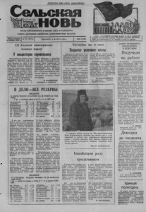ПРОЛЕТАРИИ ВСЕХ СТРАН, СОЕДИНЯЙТЕСЬ! ОРГАН КАРАСУКСКОГО РАЙКОМА КПСС И РАЙОННОГО СОВЕТА НАРОДНЫХ ДЕПУТАТОВ НОВОСИБИРСКОЙ ОБЛАСТИ - ФЛАГ ТРУДОВОЙ СЛАВЫ поднят в честь передовой я § доярки колхоза им. Ленина РУДЕЛЬ ЛИДИИ ИВАНОВ § § НЫ, получающей по 11 кг молока в сутки от коровы. § 2X3000000000000000000000000000000000000000000000 ООООООООООООООООООООООООООООООООООч. Газета основана 2 октября 1930 г. № 27 (7074) ЧЕТВЕРГ, 3 МАРТА 1988 г. Цена 3 коп. XIX Всесоюзной партконференции- достойную встречу! У инициаторов соревнования Заканчивается второй месяц очередного трудового года пя тилетки. За этот короткий пе риод времени на счету у де- повчан уже немало добрых дел. За январь успешно завершен план по перевозкам народно хозяйственных грузов и выпол нены все виды ре монта - Локо мотивные бригады цеха эксп луатации уже давно открыли счет безвозмездным поездкам в честь 118-й годовщины со дня рождения В. И. Ленина. Коллектив цеха ТР-1 элект ровозов (ст. мастер А. А. В ДЕЛО-ВСЕ РЕЗЕРВЫ СВЕДЕНИЯ О СДАЧЕ МОЛОКА В ЗАЧЕТЕ ЗА 29 ФЕВРАЛЯ 1988 ГОДА 1 гр. — суточная сдача (в ц), 2 — к 1987 году Калачинский 88 — 11 «Октябрь» 64 + ,18 Хорошинский 61 — 3 Студеновский 55 — 8 Калиновский 54 +3 им. Карла Маркса 45 +2 им. Дзержинского 44 — 28 им. Ленина 37 +5 им. Куйбышева 36 +3 им. Тельмана 33 — 1 В эти дни животноводы района трудятся над выполне нием квартального плана реа лизации молока государству. 62800 ц ценной продукции необходимо поставить на при емные пункты. Надо заме тить, что решение этой важ ной задачи осложнено, скла дывается в целом трудная обстановка. Причиной тому являются недоработки, серьез ные упущения, нарушения распорядка дня. Например, ниже прошлогоднего уровня среднесуточные надои в сов хозе им. Дзержинского. На одной из его ферм, в Расска- зово, нарушается график кормления и доения дойного стада, по нескольку дней по мещения не очищаются от навоза. Сейчас идет массовый рас. тел. Поэтому важно и необходимо вести раздой ново тельных коров. Группа специа листов РАПО побывала в нескольких хозяйствах с це лью проверки соблюдения правильной технологии ма шинного доения. Такая рабо СВЕДЕНИЯ О СУТОЧНЫХ НАДОЯХ МОЛОКА ЗА 29 ФЕВРАЛЯ 1988 ГОДА. I гр. — надой от коровы в сутки, 2 — т к уровню 1987 года им. Ленина 6,9 + 0,6 «Октябрь» 4.9 + 0,6 «Маяк Ильича» 6,3 + 1,5 «Новая семья» 4,8 — — им. Карла Маркса 6,3 Калиновский 4,7 — Калачинский 6,2 — 1,0 им. Дзержинского 4, о — 1.6 им. Тельмана 6,1 — 0,2 Хорошинский 4,5 — 0,5 Студеновский им. Калинина им. Куйбышева 5,9 5,8 5.7 4- 0,3 + 0,6 + 0,1 им. Жданова «Российский» 4,1 3,4 — 0,3 — 0,4 «Вп. к коммун.» 5,4 + 0,3 Плодово-ягодный 3,3 + 0,1 им. Мичурина 5,4 — 1.7 По району 5,3 — 0,2 Гирш) выступил с инициати вой по достойной встрече XIX Всесоюзной партийной конфе ренции. Свою инициативу он претворяет в дела, стабильно работает в новых условиях хо зяйствования. Все объемные показатели ремонта по циклу ТР-1 и ТР-2 выполняются. Кол лектив намерен, несмотря на имеющиеся трудности, темпов не снижать. Н. РОДЮШКИН, председатель профкома. Переход на хозрасчет и са мофинансирование повлек значительные изменения в произ водственной структуре плодово- ягодного совхоза. Особенно это коснулось центрального отделения, специализирующе гося в основном в садоводстве. Здесь создана единая садо водческая бригада, в которую вошла часть механизаторов, орошенцев, бывших разнора бочих. Возглавит коллектив ра ботающая агрономом-питом- ниководом А. Ф. Терещенко. С текущего