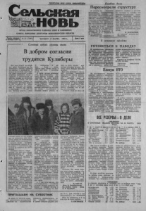 ___ ПРОЛЕТАРИИ ВСЕХ СТРАН, СОЕДИНЯЙТЕСЬ! Сельская Ш&новь ОРГАН КАРАСУКСКОГО РАЙКОМА КПСС И РАЙОННОГО СОВЕТА НАРОДНЫХ ДЕПУТАТОВ НОВОСИБИРСКОЙ ОБЛАСТИ' Позывные весны Пересмотрели структуру В колхозе им. Тельмана закончилось комплектование полеводческих звеньев. По обоюдному предложению меха низаторов и специалистов хо зяйства несколько изменена структура подразделений. Если в минувшем году производст вом растениеводческой продук ции занимались пять звеньев, то нынче их будет четыре* два зерновых и два кормовых. Возглавили их опытные земле, дельцы Б. П. Волокитин, И. П. Гофман, Б. И. Голенков и А. А. Михайлюк. Полеводы уже справились с ремонтом техники и инв"нта- і ря, поставив на линейку все почвообрабатывающие, посев ные и уборочные машины. Оставшееся до выхода в весен нее поле время не теряют да ром: скомплектовав из техники всех звеньев отряд плодоро дия, возят перегной. С начала года благодатцы доставили под будущий урожай уже около 6 тысяч тонн органических удоб рений. В. МАРФУНИН, гл. агроном' колхоза им. Тельмана. Газета основана 2 октября 1930 г. № 33 (7080). ЧЕТВЕРГ, 17 МАРТА 1988 г. Цена 3 коп. В исполкоме горсовета Семейный подряд: крупицы опыта В добром согласии трудятся Кулиберы Вот уже второй год семей ное звено Кулиберов из Ка лачинского совхоза трудится на подряде в овцеводстве. И дела в коллективе идут хоро шо, хотя существуют и опре деленные проблемы. Когда я спросила у специалистов хо зяйства, какова же эффектив ность работы звена, они при вели следующие цифры: се бестоимость центнера шерсти за год составила по звену 159 руб. 66 коп., по отделе нию (с. Калачи, где трудят ся овцеводы) — 175 руб. 05 коп. Настриг шерсти с овцы И отношение к 1 ра боте было хуже. Другое дело сейчас, когда в звене все свои, — заключа ет он. В звене четыре овцевода: отец, Яков Яковлевич, сы новья Виктор, Андрей, зять Анатолий. За ними закреп лено около 1300 маточного поголовья овец. В период яг нения трудятся сакманщица ми дочь Лидия, сноха Алла. Обеспечивается стопро центная сохранность молодня ка. Этому способствует и жесткий график работы, со- лись за дело, значит пол ностью отвечаем за него. По этому здесь больше поможет доверие. Еще шел разговор о серьез ной проблеме, мешающей нормальному ритму работы. Проблема эта — отсутст вие детского сада в Калачах. Вот и встает ежедневно вопрос у молодых тружеников — куда опреде лить детей. Чаще всего приходится их брать с собой на ферму. Конечно, это не вы ход из положения. Уезжают люди из села и в ГОТОВИТЬСЯ В горисполкоме состоялось заседание паводковой комис сии. Утверждены мероприятия по снижению уровня весенних вод в городе, подготовке к это му периоду средств и техники. К выполнению работ по про пуску паводковых вод привле чены все предприятия города. Всем коллективам предприя тий и гражданам города необ- Пленум На состоявшемся недавно пленуме, районного правления агропромышленного научно- технического общества рассмот рен вопрос о задачах советов первичных организаций НТО колхозов и совхозов в свете решений IX Всесоюзного съез да НТО сельского хозяйства. С докладом выступил предсе датель правления, делегат съезда Г. Н. Золотухин. Докладчик и выступающие отметили, что в ходе перест ройки экономики в агропро мышленном комплексе важная роль ’ отводится научно-техниче ской общественности по пропа ганде и внедрению ново