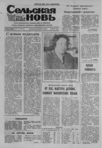 ПРОЛЕТАРИИ ВСЕХ СТРАН, СОЕДИНЯЙТЕСЬ! новь ОРГАН КАРАСУКСКОГО РАЙКОМА КПСС И РАЙОННОГО СОВЕТА НАРОДНЫХ ДЕПУТАТОВ НОВОСИБИРСКОЙ ОБЛАСТИ XIX Всесоюзной партконференции * достойную встречу Квартальный — досрочно Газета основана ѵ 0 37 (7084) I 2 октября 1930 г. ° | ЧЕТВЕРГ, 24 МАРТА 1988 г. Цена 3 коп. Труженики Калиновского совхоза досрочно справились с квартальным планом прода жи молока государству. На молкомбинат отправлено 4300 ц продукции. Наибольший вклад внесли животноводы второй и пятой ферм хозяйства, первыми выполнившие квар тальные задания. Животноводы хозяйства за метно увеличили производство молока к уровню прошлого года. Так, реализация его в сравнении с первым кварталом 1987 года возросла на 20 проц., надой от коровы — на 35 кг. Не уступают в работе и труженики мясного цеха, до срочно справившиеся с планом. Производство мяса возросло к уровню прошлого года более чем в полтора раза, увеличен и среднесуточный привес. Дополнительно к плану ка- линовцы отправят 700 ц моло ка и- 50 ц мяса. Ф. ШАПОВАЛ, директор совхоза. С новым подходом С овцеводами Студеновского совхоза встретилась еще перед началом ответственной кампа нии — ягнения маточных отар. В беседе они тогда высказали свое мнение о том, что. пред- стоит преодолеть некоторые трудности, чтобы добиться хо роших результатов, обеспечить сохранность ягнят. На этот раз встретилась с бригадой старше го чабана Е. Е. Розбаха. Егор Егорович в овцеводстве тру дится 5 лет, из них три года руководит бригадой. — Нынче у нас дела идут лучше, овцы вошли в зимовку хорошо подготовленными, — рассказывает Е. Е. Розбах. — В прошлом году маточная отара' была молодая, потому и ягнят получили мало. Во время нашей беседы ос тальные члены бригады сами подвозили корма на лошадях. — В этом году отказались от техники, — продолжает бригадир. — Пока все делаем вручную, С одной стороны и хорошо, что на лошадях управ ляемся. Не ждем, когда под везут корма. Тем более, что у нас внедрена чековая систе ма взаиморасчетов, заинтере сованность у тружеников воз росла: чем больше сохранишь, сэкономишь, тем больше будет отдача. С другой стороны, воз никла проблема. Подходит вес на, нам добавили сенаж, а для лошадей тяжело будет пере возить такой груз, снова поду- : маем о технике. Мы вошли в кошару, Хоте лось посмотреть, в каких усло виях трудятся овцеводы, да и ; как размещены животные. Сра зу же пахнуло сыростью, тя желым, спертым воздухом, в помещении сильная загазован ность. В этом и заключается сложность работы чабанов, ведь нелегко сохранить' в та ких условиях молодняк. • Но пока им это удается. — Стараемся, ведь свое, — говорят овцевоДы. Еще они сетовали на то. что кошара не подготовлена была ; к зимовке. По сути само поме- ■ щение нестарое. Построили кошару, а накрыть ее не наш лось материала, вот и стояла так несколько лет. А теперь почти . не пригодна к эксплуатации. , Постоянно завозится солома для подстилки. Но чтобы под стилка была сухая, как поло жено, солому потребовалось бы завозить беспрерывно. 1 — Скоро нам легче . ИЗВЕЩЕНИЕ 31 марта 1988 года в 13 ча сов в здании Дома Советов созывается четвертая сессия Карасукского городского Сове та народных депутатов. На по вестку дня выносится вопрос «О состоянии и мерах по улуч шению работы учреждений НА «ЛЕТНЕЕ» ВРЕМЯ Государственная комиссия единого времени и эталон ных частот СССР сообщает, чт