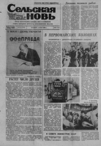 ПРОЛЕТАРИИ ВСЕХ СТРАН, СОЕДИНЯЙТЕСЬ! новь ОРГАН КАРАСУКСКОГО РАЙКОМА КПСС И РАЙОННОГО СОВЕТА НАРОДНЫХ ДЕПУТАТОВ НОВОСИБИРСКОЙ ОБЛАСТИ Газета основана 2 октябре 1930 ». № 55 (7102) ЧЕТВЕРГ, 5 МАЯ 1988 г. Цена 3 коп. Дневник полевых работ Погодные условия нынеш ней весны способствовали ран нему началу комплекса поле вых- работ. И большинство хо зяйств активно и своевремен но приступили к ним. Уже к концу апреля земледельческие звенья совхозов «Октябрь» и Студеновского, колхозов им. Карла Маркса, им. . Куйбыше ва, им. Тельмана, им. Калини. на провели закрытие влаги на всей площади пашни, на мно гих участках развернули по вторное боронование. Однако кое-где, в первую очередь в Хорошинском, Калачинском и Калиновском совхозах, в кол хозах им. Жданова, им. Мичу рина, из-за неподготовленности части техники и организацион. ных неурядиц с запозданием приступили к закрытию влаги — боронами здесь обработано лишь от 60 до 80 процентов пашни. Лучше прошлогоднего ведут карасукские земледельцы под кормку многолетних трав ми неральными удобрениями. В целом этот агроприем выпол нен на 6,5 тысячи гектаров. Прошедшие 3 — 4 мая дож ди пополнили запасы почвен ной влаги, которую надо мак симально использовать для будущего урожая. Для этого необходимо без промедления провести дополнительное боро нование. Пришли сроки весен ней пахоты паров, посева мно голетних беспокровных трав, начала полива орошаемых уча. стков. - гдайжмй тапыт мшшгішшйый . , Л м шшмйтншіыи міш». / ж шжг м хшшнтшм огйвдаш* Плакат художника В. Сачкова, < . Издательство «Плакать. , РАСТЕТ ЧИСЛО ДРУЗЕЙ День печати отмечается как всенародный праздник. И это зако номерно. Верная ленинским традициям, принципам марксизма- ленинизма, советская пресса выступает боевым пропагандистом, агитатором и организатором масс. Миллионы советских людей начинают свой день со знакомств со свежим номером газеты или журнала. Печатное слово несет читателям заряд информации, вызывает у них живой отклик, бу дит мысли и чувства, помогает формировать мнения по актуаль ным вопросам нашей жизни. Сегодня в центре внимания нашей печати — вопросы реализации решений XXVII съезда партии, последующих Пленумов ЦК КПСС, перестройка, хозяйственный расчет. Практически в каждую семью приходят сейчас печатные издания. Главный критерий нашей работы — пробудить интерес к газете. В последнее время он возрос. Это видно и по тиражу и по почте. Каждый день редакционная почта приносит подтверждение того, что идеи перестройки все больше овладевают сердцами людей, на правляют их инициативу, творчество на конкретные дела, на выполнение намеченных партией планов. Большую часть читательских писем мы публикуем в газете, часть их становится поводом для выступлений сотрудников газеты. Многие проблемы, поднятые читателем, решаются в ходе разбора на ‘ местах. Читательские письма радуют нас. Обращаются к нам со своими проблемами — • значит верят в силу газеты, в силу пе чатного слова. К сожалению, не все еще проблемы решаются, даже если и вмешивается газета. В том, что интерес к «районке» возрос, большая роль отводится нашим добрым помощникам — рабочим и сельским корреспонден там. Их круг широк — от рядового труженика до руководителя Рабселькоровский актив «районки» составляют люди разных воз растов и профессий. Именно-они помогают делать газету интересне