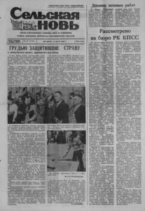 ПРОЛЕТАРИИ ВСЕХ СТРАН, СОЕДИНЯЙТЕСЬ! НОЕВВэ Дневник нулевых работ По данным оперативной сводки РАПО, прибивка вла ги в хозяйствах района прове дена на 150 тысячах гектаров, многие колхозы и совхозы бо ронят поля по второму разу. Параллельно выполняются и другие агроприемы весеннего комплекса Минеральные удоб рения внесены почти на 8 .ты сячах гектаров плантаций мно голетних трав, идет подъем паров, продолжается весно вспашка. Начинается посевная. В Калачинском совхозе в поч ву заделываются семена одно летних трав, на 153 гектарах размещен подсолнечник на масло. Сеют однолетку в кол хозе «Новая семья» и Кали новском совхозе, в совхозе «Октябрь» — многолетники. ОРГАН КАРАСУКСКОГО РАЙКОМА КПСС И РАЙОННОГО СОВЕТА НАРОДНЫХ ДЕПУТАТОВ НОВОСИБИРСКОЙ ОБЛАСТИ Газета основана 2 октября 1930 ». № 57 ,(7104) ЧЕТВЕРГ, 12 МАЯ 1988 г. Цена 3 коп. Рассмотрено на бюро РК КПСС ГРУДЬЮ ЗАЩИТИВШИЕ СТРАНУ С ТОРЖЕСТВЕННОГО МИТИНГА, ПОСВЯЩЕННОГО ДНЮ ПОБЕДЫ. 9 мая. Яркое солнце, голубое небо, тихая теплая погода. Светлозеленая окраска деревь ев, распустившиеся почки берез, кленов, то полей. Кажется, сама природа радуется вме сте с людьми светлому празднику — Дню Победы. К центру города стекаются карасуча- нё. Здесь, у мемориала воинам-караеучанам, отдавшим свои жизни в годы Великой Отече ственной за свободу и независимость нашей социалистической Отчизны, состоится митинг. А пока у Вечного огня несет Вахту памяти молодежь района — внуки тех, кто мужествен но сражался 5 фашизмом и добил его в собст венном логове — Берлине. Звучат песни военных лет. Все ближе к началу митинга. Сотни людей пришли отметить этот светлый праздник Победы и поклониться памяти тех, кто погиб на полях сражений, чьи сотни и сотни фамилий вылиты на пилонах мемориала. От имени бюро РК КПСС, районного и го родского исполкомов Советов народных депу татов военный комиссар поздравляет фронто виков, всех карасучан с Днем Победы и жела ет всего наилучшего. Капитан в отставке Ф. И. Подорожный, сер жант в отставке 3. А. Шапорева рассказали о боевом пути, о том, какой ценой досталась победа. Они дают наказ молодым хорошо го товить ' себя к армии, честно выполнять свой долг перед Родиной. Воин-интернационалист Юрий Кончуковский, с честью прослуживший в Афганистане, гово рил о прочности воинских традиций, о том, что молодые солдаты стараются брать пример со своих героических дедов. А призывник Юрий Коротков заверил, что будущие воины будут верно служить Родине. Митинг окончен. К пилонам с именами по гибших карасучан, к бюстам землякам — Героям К мемориалу движется колонна фронтови ков, на груди которых ордена и медали. Здесь же бывшие воины-интернационалисты. Горя чими аплодисментами встречают их присутст вующие. Микрофоны установлены недалеко от Веч ного огня. Здесь же фронтовики, руководите ли района. Митинг, посвященный 43 годовщи не Великой Победы, открывает председатель райисполкома С. В. Кульневич. Величествен но звучит Гимн Советского Союза. У микрофона военный комиссар подполков ник Н Н. Плотников. Он говорит о том, каким долгим и непомерно трудным был путь к победе в войне с вероломным фашизмом. Все народный характер войны нашел свое ярчай шее проявление в массовом героизме совет ских людей на фронте. Более 7 миллионов че ловек, в том числе около 6 тысяч воинов-ка- расучан награждено боевыми медалями и орде