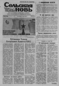 ОРГАН КАРАСУКСКОГО РАЙКОМА КПСС И РАЙОННОГО СОВЕТА НАРОДНЫХ ДЕПУТАТОВ НОВОСИБИРСКОЙ ОБЛАСТИ Газета основана 2 октября 1930 ». № 65 (7112) ВТОРНИК, 31 МАЯ 1988 г. Пека 3 коп. Плакат художника А. Смыслова «XIX Всесоюзная партийная конференция». Издательство «Плакат». Публикация Тезисов Центрального Комитета КПСС В центральных, республикан ских, краевых и областных га зетах опубликованы одобренные Пленумом ЦК КПСС 23 мая 1988 года Тезисы Центрально го Комитета КПСС к XIX Все союзной партийной конферен ции. В вводной части этого доку мента отмечается, что наша ' страна переживает глубокие революционные преобразования исторического значения, ини циатором и организатором ко торых выступает Коммунисти ческая партия Советского Сою за. Апрельский (1985 г.) Пле нум ЦК КПСС, XXVII съезд определили курс партии на ус корение социально-экономиче ского развития, всестороннее обновление советского общест ва, выход социализма на ка чественно новый уровень. Эта новаторская стратегия была углублена и конкретизирована на январском и июньском Пле нумах ЦК КПСС 1987 года, в дни празднования 70-летия Октября, на февральском Пле нуме ЦК в нынешнем году. В результате заложены основы теории и научной политики пе рестройки всех сторон жизни общества. Цель перестройки — в пол ной мере раскрыть гуманисти ческую природу и созидатель ную мощь социализма. Дости жение этой цели неотделимо от развития демократии и гласно сти, самоуправления народа, радикальной экономической ре формы, нравственного очище ния общества, выявления твор ческих возможностей, которые заключены в свободном и все стороннем развитии человека. Дневник полевых работ По* оперативным данным РАПО, к 30 мая сев зерновых культур в хозяйствах района был проведен на 69 тысячах гектаров пашни, что составило 84 процента к плану. К этой дате размещение колосовых уже закончили колхозы им. Куйбышева, им. Калинина, им. Каковы первые итоги пере стройки, что надо сделать, что бы убрать препятствия, стоя щие на ее пути, дать новый мощный импульс революцион ному процессу обновления, сделать его необратимым? На эти вопросы, живо волнующие коммунистов, всех советских людей, должна дать ответ XIX Всесоюзная партийная конференция, которая откроет ся 28 июня 1988 года в Моск ве. Повестка дня конференции: 1) О ходе реализации решений XXVII съезда КПСС, основ ных итогах первой половины двенадцатой пятилетки и зада чах партийных организаций по углублению процесса перест ройки, 2) О мерах по дальней шей демократизации жизни партии и общества. Вопросы, которые выносят ся на рассмотрение конферен ции, имеют жизненное значе ние для партии и страны. Пред стоит дать реалистическую оценку сделанного, подойти к тому, что достигнуто, с пози ций серьезного критического и самокритического анализа, ра зобраться, как выполняются принятые нами решения, ост ро поставить вопросы, требую щие первоочередного внима ния, обобщить положительный опыт, определить перспективу дальнейшего движения вперед. В качестве платформы для дискуссии по этим вопросам предлагаются Тезисы ЦК КПСС. Через революционную пере стройку, демократизацию жиз ни в идейно-политической, экономической и социальной Мичурина, плодово-ягодный совхоз. Эти хозяйства, а также Студеновский совхоз и колхоз им. Карла Маркса раньше дру гих справились с севом глав ной продовольственной культу ры 