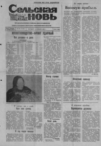 ПРОЛЕТАРИИ ВСЕХ СТРАН, СОЕДИНЯЙТЕСЬ! ОРГАН КАРАСУКСКОГО РАЙКОМА КПСС И РАЙОННОГО СОВЕТА НАРОДНЫХ ДЕПУТАТОВ НОВОСИБИРСКОЙ ОБЛАСТИ I Из опыта работы Весомую прибыль КОЛХОЗУ ИМ. КУЙБЫШЕВА ПРИНОСИТ СТАЦИО НАРНЫЙ ОТКОРМ ЯГНЯТ, А НАСЕЛЕНИЮ ОН ДАЕТ Газета основана кр 0 ол 2 октября 1930 г. ЖИВОТНОВОДСТВО-ФРОНТ УДАРНЫЙ Все резервы — в дело СВЕДЕНИЯ О СУТОЧНЫХ НАДОЯХ МОЛОКА реализацией важной задачи — выполнением плана девяти ме- 1 гр. — надой от коровы, 2 — ± к уровню 1987 года Плодово-ягодный 11,3 -4-1,2 им. Калинина 7,5 -|-0,5 им. Куйбышева 10,9 -4-0,3 Студеновский . 7,4 4-0,4 им. Жданова . 9,9 4-0,9 им. Тельмана 7,4 — им. Ленина 9,5 — 0,6 «Российский» 7,3 — 1,0 «Вп. к коммунизму» 8,9 — 0,5 Калачинский 7,2 — 1,6 «Новая семья» 8,9 — 1,0 Хорошинский 7,0 — 1,2 им. Карла Маркса 8,6 — 0,8 «Октябрь» 6,3 4-1,5 Калиновский 8,5 — 0,2 нм. Мичурина 8,3 — 1,5 «Маяк Ильича» 5,7 — 0,3 им. Дзержинского 8,1 4-0,1 По району 8,0 — 0,3 Труженики молочного цеха поднялось. Сейчас лимит конц- продолжают трудиться над . кормов немного снизился. Рассказала она и об услови. ях работы на летней доильной сяцев продажи молока государ ству. Животноводы плодово- ягодного совхоза отправляют продукцию только первым сор том. Да и добавка среднесу точных надоев к уровню прош лого года возросла значитель но — на 1,2 кг. — Каждый из.нас старается, — говорит доярка совхоза Т. А. Короткевич. — Коров па стухи хорошо пасут, даем ком бикорм и шроты, молоко сразу кормах, как о хлебе Идет сено урочищ О Фронт зеленой жатвы в кол хозе им. Жданова передвинул ся с естественных гривных сенокосов и орошаемых земель в места неудобиц, на заливае мые весенними паводковыми водами низинные займища. Звено по заготовке грубых, кормов, которым руководит 4 Г. Н. Ломиковский, максималь но обкосив урочище Боровое, перешло в полном составе на площади лиманного орошения, занимающие сотни гектаров в урочище Чегала. Травы здесь удались на славу, обещая дать на круг по 30 центнеров сена В ход пошли камыши Невелики площади кормоза готовительных угодий в плодо во-ягодном совхозе. Поэтому в засушливых условиях ны нешнего лета механизаторы хозяйства особый упор делают на заготовку сена в неудобных ЧЕТВЕРГ, 28 ИЮЛЯ 1988 г. Цена 3 коп. площадке. — Намного легче стало, ко гда провели молокопровод, те. перь руками не таскаем бидо ны. Площадка накрытая, это очень удобно на случай непо годы, да и оводы не одолева ют коров. Следим, чтобы в поилках была всегда чистая, свежая вода, постоянно меняем ее, так важно не допустить за. болеваемости ко,Ла. Активное участие в выполне с гектара. С 28 июля приступило к ра боте и звено по заготовке соч ных кормов. Коллектив, кото рым руководит передовой по левод колхоза А. И. Бороден- ко, начал закладку сенажа. Траншея заполняется смесью костреца, люцерны, рапса, овса. Такой набор культур улучшит качество корма. Полеводы хозяйства наме рены перевыполнить планы по накоплению сена и сенажа. В. ЗАЙЦЕВ, председатель колхоза им. Жданова. местах, в покрытых водой ни зинах. В эти дни кормодобыт чики ведут уборку- трав на за речном лугу, выкашивают ка мыши на острове озера Гуси ного, куда не просто было переправить технику. Все за нии плана принимают и молоко, сдатчики. — Каждая семья сдает мо локо, — рассказывает пенсио нерка Л. К. Мищенко. — У нас, например, трое маленьких, ребятишек. Йо вечерний удой все равно сдаем. А как же, помогать совхозу надо. Не бу дешь сдавать молоко, как по т