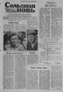 ПРОЛЕТАРИЙ ВСЕХ СТРАН, СОЕДИНЯЙТЕСЬ) Пленум ЦК КПСС ОРГАН КАРАСУКСКОГО РАЙКОМА КПСС И РАЙОННОГО СОВЕТА НАРОДНЫХ ДЕПУТАТОВ НОВОСИБИРСКОЙ ОБЛАСТИ Цена 3 коп. Газета основана 9 октября 1930 г. О кормах, как о хлебе Беленские косари Нынче на полях колхоза им. Ленина трудная пора кормоза готовки. Холодная весна и жаркое лето сыграло свою роль в росте трав. Трудности с заготовкой сена связаны и с отсутствием орошаемых зе мель. Что противопоставить № 92 (7139) ВТОРНИК, 2 АВГУСТА 1988 г. этому? Организованность и ма стерство. Более лучшие результаты в заготовке сена, у механизаторов бригады № 2. Скосив все свои площади, они лидируют в внутрихозяйственном соревно вании, заготовив на две с по ловиной тысячи сена больше чем у кормозаготовителей из бригады № 1. Но план еще не выполнен. Поэтому в хозяйст ве изыскивают способы где и за счет чего можно пополнить кормовую базу животноводст ва. Например, будут работать на угодьях колхоза «Новая семья». На снимках: косари Сергей Сергеевич Мистюк (слева), Эдмунт Иосифович Дуквен. Фото В. Коробейникова. 29 июля 1988 года состоял ся очередной Пленум Централь ного Комитета КПСС. Пленум рассмотрел вопрос «О практической работе по реализации решений XIX Все союзной партийной конферен ции». С докладом по этому вопросу выступил Генераль ный секретарь ЦК КПСС М. С. Горбачев. Участникам Пленума была предоставлена возможность предварительно ознакомиться с проектами документов, под готовленными Политбюро ЦК КПСС исходя из установок XIX партийной конференции. В прениях по докладу высту пили: тт. В. В. Щербицкнй — первый секретарь ЦК Ком партии Украины, В. П. Деми денко — первый секретарь Кустанайского обкома Компар тии Казахстана, Е,- Д. Похи- тайло — первый секретарь Омского обкома КПСС, И. С. Болдырев — первый секретарь Ставропольского крайкома КПСС, Н. Ф. Васильев — ми нистр мелиорации п водного хозяйства СССР, В. М. Кавун — первый секретарь Житомир ского обкома Компартии Ук раины, Ю. Ф, Соловьев — первый секретарь Ленинград ского обкома КПСС, К. 3. Те рех — министр торговли СССР, А. А. Хомяков — пер вый секретарь Саратовского обкома КПСС, В. Н. Плетнева — ткачиха Костромского льнокомбината имени В. И. Ленина, Б. К. Пуго — пер О СЛОЖЕНИИ ДЕПУТАТСКИХ ОБЯЗАННОСТЕЙ с депутата избирательного округа № 83 Казанцева А. В. (решение пятой сессии двадцатого созыва) Рассмотрев заявление депутата избирательного округа № 83 Казанцева Анатолия Васильевича и заключение постоянной мандатной комиссий, І&рйсукскиЙ районный Совет народных депутатов решил: В связи с выездом на 'постоянное место жительства в г. Ново сибирск сложить депутатские полномочия с депутата районного Совета Казанцева А. В. в связи с личным заявлением Председатель исполкома' С. КУЛЬНЕВИЧ. Секретарь исполкома П. ГРИНЧЕНКО. О ПРОВЕДЕНИИ ВЫБОРОВ вый секретарь ЦК Компартии Латвии, А. Ф. Пономарев — первый секретарь Белгородско го обкома КПСС, А. С. Сыс- цов — министр авиационной промышленности СССР, Н. Ф. Татарчук — первый секретарь Калининского обкома КПСС, Е. Е. Соколов — первый сек ретарь ЦК Компартии Бело руссии, Г. В. Колбин — пер вый секретарь ЦК Компартии Казахстана, В. А. Быков — министр медицинской и мик робиологической промышлен ности СССР. С заключительным словом на Пленуме выступил Гене ральный секретарь ЦК КПСС М. С. Горбачев. Пленум принял по обсуждав- шемуся вопросу по