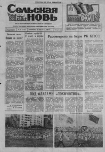 ПРОЛЕТАРИИ ВСЕХ СТРАН, СОЕДИНЯЙТЕСЬ! НОВЬ ФЛАГ ТРУДОВОЙ СЛАВЫ поднят в честь ПОЛЕВО ДОВ КОЛХОЗА «НОВАЯ СЕМЬЯ», выполнивших план заготовки сена в количестве 29,5 тысячи центнеров. Еще раньше труженики хозяйства справились с заданием по закладке сенажа. ОРГАН КАРАСУКСКОГО РАЙКОМА КПСС И РАЙОННОГО СОВЕТА НАРОДНЫХ ДЕПУТАТОВ НОВОСИБИРСКОЙ ОБЛАСТИ Газета основана 2 октября 1930 г. № 98 (7145) ВТОРНИК, 16 АВГУСТА 1988 г. Цена 3 коп. Тревожный сигнал Стоило ли ехать? Водители Новосибирского автокомбината № 1 уже че тырежды приезжали в Кара- сукский район помогать сель ским труженикам убирать уро жай. Работали в Хорошинском совхозе, в колхозе «Новая семья», в других хозяйствах. И всякий раз горожане и сель чане испытывали удовлетво рение, так как с должной от ветственностью ■ выполняли возлагавшиеся на них обязан ности. С настроем на хорошую ра боту ехали семь водителей автокомбината в Карасукский район и нынче. Направили нас в Студеновскйй совхоз, куда прибыли 4 августа. Вопреки ожиданиям, с самого начала пошли неурядицы. Хозяйство не подготовилось к встрече горожан. В комна те общежития, куда нас по селили, неисправным оказа лось даже электроосвещение. Умывальник получили... без сос ка, Не в чем пост'ирать одеж ду, не из чего попить воды. Первые четыре дня питались всухомятку, так как ужин нам не готовили. Такой же оказалась и орга низация труда приезжих. На правили нас возить сенажную массу с поливного участка на фуражный склад. Однако лю дей на разгрузку машин не дали, хотя обещали. И полу чается, что машины больше простаивают, чем работают. Так стоило ли, спрашивается, гнать их за пятьсот верст? Ведь от такой «помощи» мало пользы и хозяйству, и нам — думали заработать, а тут хотя бы за питание рассчитаться. Хочется надеяться, что ру ководство совхоза все-таки организует труд и быт прие хавших на уборку урожая по сланцев города должным об разом. В. ЛУКАНОВСКИИ, бригадир группы. В. АБАТУРОВ, профорг. Позывные страды- 88 И хлеб, и корма В эти августовские дни по леводы Студеновского совхоза работают сразу на двух фрон тах — разворачивают уборку урожая и продолжают загото вку кормов. Во вторник хле боробы .закончили косовицу овса на полях центрального отделения, занимающего здесь полтысячп гектаров. Неплохо поработали комбайнеры А. Бухмиллер и В. Гарнагин, «степные корабли» которых оборудован# десятиметровыми жатками. В четверг начался обмолот валков. Близится к завершению уборка второго урожая много летних трав на поливном уча. стке Луганского отделения, а орошенцы отделения № 1 уже закончили второй укос. 11 ав густа совхоз выполнил заклад ку сенажа в количестве 50 тысяч центнеров. Но зеленая жатва продолжается, в дело идут все резервы. Два гусе ничных комбайна косят на се но болотные травы. Накапли вается веточный корм, в его заготовке сельчанам помога ют горожане — «коллективы СМУ УС «Новосг&ирскводст- рой», райбытуправления и др. В. ИЛЮШИН, главный агроном Студе новского совхоза. 18 АВГУСТА — ЕДИНЫЙ ПОЛИТДЕНЬ. Тема занятии: «Время кон кретных дел» — но материа лам июльского (1988 г.) Пле. нума ЦК КПСС и XIX Всесо юзной партийной конференции. ПОД ФЛАГАМИ «ЛОКОМОТИВА» 13 — 14 августа на карасук- ском стадионе «Локомотив» прошли финальные старты III летней олимпиады Запа дно. ) Сибирской железной дороги. Открыл ее красочный парад команд-участниц, . представляв ших Ал