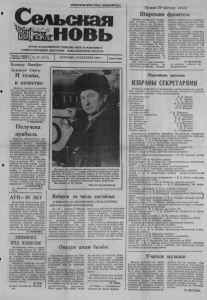 ПРОЛЕТАРИИ ВСЕХ СТРАН, СОЕДИНЯЙТЕСЬ! овь ОРГАН КАРАСУКСКОГО РАЙКОМА КПСС И РАЙОННОГО СОВЕТА НАРОДНЫХ ДЕПУТАТОВ НОВОСИБИРСКОЙ ОБЛАСТИ Урожаю-89~прочную основу Широким фронтом Газета основана 1 октября 1930 г. Великому Октябрю- достойную встречу И темпы, и качество Неплохо трудится коллектив 9-й дистанции гражданских со оружений. Выполнен план 9 месяцев по капитальному ре монту, с превышением завер. шен ы задания по производите, льности труда и прибыли. Доб росовестно выполняют свои обязанности слесарь - жестян щик С. Г. Веселов, плотник А. -Н. Руденок, крановщик Н. С. Фролов, токарь Н. М. Бондарь. Перевыполняя свои дневные задания, они при этом обеспе чивают высокое качество работ. Т. ИВАНОВА. Получена прибыль Хороших показателей в тру де добиваются труженики мясо комбината. Выпуск товарной продукции за девять месяцев выполнен на 103,3 проц., или на 7,5 проц, больше чем в этот же период прошлого года. План по производительности труда выполнен на 102 проц. В итоге получена чистая при быль в размере 672 тысячи рублей. Из этой суммы около 63 проц, поступило в союзный и местный бюджеты, плата за фонды и трудовые ресурсы составила около 16 проц, более 12 проц, перечислено в выше стоящую организацию. В трудо вом коллективе осталось около 70 тыс. рублей или более 10 процентов от чистой прибыли. Л. ЗАХАРОВА, гл. экономист мясокомби, ната. АТП-50 ЛЕТ 28 октября Карасукское АТП отметит свой полувековой юби лей. На торжественном вечере посвященном этой дате, будут подведены итоги работы пред приятия в условиях хозрасчета. В торжестве примут участие ветераны и работники АТП. Лучшим из них будут вручены Почетные грамоты, памятные подарки. К этой знаменатель, ной дате на предприятии гото вится праздничная прогоамма. _____________ Л. ОБУХОВА. ЗИМОВАТЬ ПОД НАВЕСОМ Прибавилась забота у труже ников ферм колхоза им. Мичу. рина с постановкой скота на зи мовку. Животные переведены на зимний рацион кормления, но в дневное время находятся на пастбище. Решено в хозяйстве, что тел. ки случного возраста в стой, ловый период будут содержать ся под навесом, на глубокой соломенной подстилке. Зимовка телок в таких условиях здесь не в новинку. В минувшем году животные уже содержались по такому методу. Е. ТУР, ветврач колхоза им. Мичури на. № 127 (7174) I ВТОРНИК, 25 ОКТЯБРЯ 1988 г. Цена 3 коп. Из года в год добивается хороших результатов Александр Михайлович Горяев — шофер ремонтно-технического пред приятия. В период уборочной страды А. М. Горяев оказы вал помощь в уборке урожая труженикам колхоза им. Ка. линина. А в эти дни он перевозит перегной на поля совхоза Калачинского, ежедневно выполняет норму выработки. На снимке: А. М. Горяев. Фото В. Коробейникова. Избирем из числа достойных О ВЫБОРАХ НА ВСЕСОЮЗНЫЙ СЪЕЗД РАБОТНИ. КОВ НАРОДНОГО ОБРАЗОВАНИЯ. 20 — 23 декабря в Москве состоится Всесоюзный съезд работников народного образо. вания. В целях проведения вы. боров делегатов на этот съезд на демократической основе принято решение районного оргкомитета провести их на районной конференции 2 нояб. ря 1988 года согласно установ ленным нормам представитель ства. Районной конференции по выборам делегатов на Всесоюз. Откорм ягнят выгоден Труженики колхоза им Кар ла Маркса досрочно выполни ли годовой план продажи го сударству мяса, 2600 центнеров отправлено ими на приемные пункты. Определенный вклад в этот успех внесли м