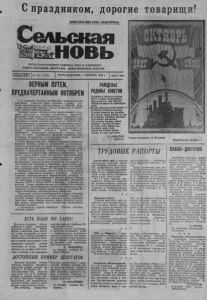 С праздником, дорогие товарищи* ПРОЛЕТАРИИ ВСЕХ СТРАН, СОЕДИНЯЙТЕСЬ! новь ОРГАН КАРАСУКСКОГО РАЙКОМА КПСС И РАЙОННОГО СОВЕТА НАРОДНЫХ ДЕПУТАТОВ НОВОСИБИРСКОЙ ОБЛАСТИ ! октября" ІЭЗОг № 133 (7180) | ПОНЕДЕЛЬНИК, 7 НОЯБРЯ 1988 г. Цена 3 коп. ВЕРНЫМ ПУТЕМ, ПРЕДНАЧЕРТАННЫМ ОКТЯБРЕМ 71-ю годовщину Великод Октябрьской социалистической революции советский народ встречает в период глу боких революционных преобразований в обществе. Идеи и дела перестройки вызвали подъем активности и творче ской энергии советских людей. Сложный процесс экономических преобразований посте пенно происходит в трудовых коллективах карасучан. Внедрение новых форм хозяйствования в определенной ме ре способствовало успешному выполнению сельчанами девя- тимесячного задания продажи мяса и молока. Победителями предоктябрьского социалистического соревнования призна ны коллективы Студеновского совхоза и колхоза им. Лени на. элеватора и ремонтного предприятия, хозрасчетного дэ- рожно - строительного участка и треста «Карасук- межрайгаз», Карасукских электросетей и станции Кара- сук- 1. По давно сложившейся традиции коллективы этих передовых предприятий и организаций города возглавят праздничную демонстрацию трудящихся. В этот праздничный день, отмечая очередную годовщину Великого Октября делами и свершениями, мы не доволь- ствуемся достигнутым. В стране начался новый этап пере стройки по всем направлениям, и прежде всего по особо важному — политическому, начало которому положила со стоявшаяся XIX Всесоюзная партийная конференция. Курс XXVII съезда КПСС и XIX Всесоюзной партконференции на демократизацию и гласность коренным образом измени ли идейно - политическую атмосферу в обществе. Об этом красноречиво свидетельствуют результаты прошедшей от четно-выборной кампании в партийных организациях рай она: сменилось примерно 50 процентов секретарей первич ных парторганизаций против 20 — 30 проц, в прошлые годы. Начавшаяся перестройка политической системы должна устранить деформации прошлого, возродить ленинскую практику социалистического народовластия. Большой от клик вызвали опубликованные в печати проекты Закона об изменениях и дополнениях Конституции (Основного Закона) СССР и Закона СССР о выборах народных де путатов ’ . Сейчас повсеместно идет обсуждение этих важных документов, осуществляющих ленинскую концепцию наро довластия Страны Советов, начало которому положила Ве ликая Октябрьская социалистическая революция. Происходят глубокие преобразования в нашем обществе, непосредственное участие в которых принимает каждый со ветский человек. Предстоящие выборы в Советы народных депутатов, съезд Советов откроют новую страницу в исто рии нашего государства, путь которой был предначертан Великим Октябрем. С праздником, дорогие товарищи! Счастья, здоровья, успехов в труде! ЕСТЬ ПЛАН Большую трудовую победу одержали в канун праздника полеводы колхоза им. Карла Маркса, выполнив план прода жи хлеба госдарству в коли честве 19,3 тысячи центнеров. Земледельцы хозяйства в слож ных условиях засушливого лета вырастили хороший урожай колосовых, на полях первой бригады он составил 15,3 цент нера с гектара, а на отдельных ДОСТОЙНЫЙ ПРИМЕР ДЕПУТАТОВ Хорошей трудовой победы добились накануне праздника передовые доярки колхоза им. Ленина Г. Н. Зуенко и Н. П. Кавалеристов
