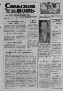 ПРОЛЕТАРИИ ВСЕХ СТРАН, СОЕДИНЯЙТЕСЬ! ОРГАН КАРАСУКСКОГО РАЙКОМА КПСС И РАЙОННОГО СОВЕТА НАРОДНЫХ ДЕПУТАТОВ НОВОСИБИРСКОЙ ОБЛАСТИ Газета основана 2 октября 1930 г №. 150 (7197) СУББОТА, 17 ДЕКАБРЯ 1988 г. Цена 3 коп ( ФЛАГ ТРУДОВОЙ СЛАВЫ поднят в честь передовой доярки Студеновского совхоза РУДЕНОК НИНЫ СЕРГЕ ЕВНЫ, надоившей с начала года более 33 ц молока от каждой коровы своей группы. ЛЮОООООООООООООООООООООООООООООООООООООООООООООООООООООООООООООООООООООООООООСООСХ. Боль Армении — ноша боль БЕДА ОБЩАЯ Никого не оставили равно душными трагические события, случившиеся в Армянской ССР, где в результате земле трясения разрушены города и ісела, погибли десятки тысяч людей. ; На митингах, прошедших у нас в селах, принято единодуш- -но решение о перечислении од- ; подневного заработка для ока ВСЕМ КОЛЛЕКТИВОМ Работники локомотивного депо, как и все советские лю ди, откликнулись на трагиче ские события в братской рес публике, приведшие к разру шениям и гибели людей. На собраниях, прошедших как в ремонтном цехе, так и в цехе эксплуатации, люди были еди ВКЛАД ВЕТЕРАНОВ На расширенном заседании совета ветеранов войны и тру да решено в помощь постра давшим от землетрясения жи телям Армении перечислить 10 процентов от пенсий. Всего І і і і * Забота о человеке: местные резервы и инициатива Второе «дыхание» рыбозавода * 7 7 7 * * » 7 7 77 7 * * ! 7 7 7 7 7 * * 7 * * ! 7 * I» 7 $ К Новая рубрика, появив шаяся недавно в районной газете, думается, заинтересо вала всех ее читателей. Свой вклад в обеспечение населения продуктами пита ния вносит и коллектив Кара- сукского озерного рыбозаво да. К сожалению, еще до не давнего времени нам прихо дилось выслушивать частые упреки карасучан: дескать, в районе есть рыбодобываю щая организация, а местная рыба в торговле — редкость. Так действительно и было по той причине, что Карасук- ский участок, входивший до начала 1988 года в Лупин ский рыбозавод, не имел пра ва распоряжаться своей про дукцией по своему усмотре нию; потому почти вся вы ловленная на озерах района рыба отправлялась в Купило, а оттуда в Новосибирск и по другим адресам. Ситуация несколько изме нилась после того, как наш завод стал самостоятельным структурным подразделением государственного кооператив ного объединения «Новосибл рыбхоз». Сейчас мы имеем возможность некоторую часть улова реализовать на месте. Правда, она невелика — девятимесячный план по ставки местной рыбы райпо и орсу составил 7,2 тонны. А вот распоряжаться самостоя тельно всей сверхплановой продукцией завод по-прежне му не может. Хотя свою го довую программу коллектив уже давно перевыполнил' при зания помощи пострадавшим. В этом принимают участие ве тераны войны и труда, обслу живающие и общественные ор ганизации, интеллигенция сел. Для семей переселенцев кол хоз может предоставить пять квартир. А. КУЛИНИЧ, секретарь партбюро колхо за им. Мичурина. нодушны в том, что надо по мочь в беде армянскому наро ду. Решили перечислить одно дневный заработок деповчан в помощь пострадавшим. Н. РОДЮШКИН, председатель профкома ло комотивного депо. это составит около 2 тыс. руб лей. Ю. БЛАГО» АЗИМОВ, председатель совета ветера нов войны и труда Хорошин- ского сельского Совета. годовом плане 2,2 тысячи центнеров наши бригады вы ловили за десять месяцев бо лее 4,5 тысячи центнеров рыбы. Первый год самостоятель ной работы складыв