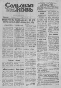 Сельская ОНГАН КАРАСУКСКОГО РАИОННПГЛ СОВЕТА НАРОДНЫХ ДЕПУТАТОВ НОВОСИБИРСКОЙ ОБЛАСТИ ИЗ ЗАЯВЛЕНИЯ ПРЕДСЕДАТЕЛЯ ВЕРХОВНОГО СОВЕТА РОССИИ Р. ХАСБУЛАТОВА В ОТВЕТ НА ЗАЯВЛЕНИЕ ПРЕЗИДЕНТА Б. ЕЛЬЦИНА ОБ АРТПОДГОТОВКЕ В АВГУСТЕ: «Я обращаюсь ко всем согражданам всем народным дя-у- татам. начиная от сельского и поселковых Советов, предста вительным органам власти на местах — ...будьте крайне вни мательны и готовы ко всяким неожиданностям. В слѵча₽ необ ходимости каждый из вас должен исполнить свой долг народ ного избранника». Газета основяча 2 октября 1930 г. БОГАТЫЙ УРОЖАЙ ПОД УГРОЗОЙ БОЛЬШИХ ПОТЕРЬ ИЗ-ЗА ОСТРОЙ НЕХВАТКИ ГОРЮЧЕГО, ТРАНСПОРТА. НУЖНЫ СРОЧНЫЕ МЕРЫ! Страдные На полях района развора чивается уборка урожая, а вместе с ней начинаются, точ нее, еще более обостряются страдания селян, связанные со страдой. В понедельник в райсельхозуправлении -можно было увидеть руководителей и специалистов почти всех хо зяйств Каждый приехал сю да с болью на душе и с на деждой хоть как-то решить проблемы. Вот что ответили на вопрос корреспондента не которые из селян. В, Лель, директор АО «Хо- рошинское»: — Сегодня поставили на прикол всю технику. Остано вилась заготовка сенажа, ко совица озимых зерновых. Пришли автомашины из Ново сибирска, но и они стоят без дела. Причина одна — техни ку. нечем заправлять, так как нет денег для закупки горю чего. а нефтебаза отказыва ется давать его взаймы. Если так дело пойдет и дальше. С каждым днем ширится набор работ на сельхозугодь ях района. Продолжается за готовка кормов'. Сена к 16 августа было наскирдовано 438 тысяч центнеров, что со ставило 104 процента к пла ну.' Сенажа уложено в тран шеи 413 тыс. ц — это вдвое больше запланированного. Уже одиннадцать хозяйств ведут , уборку зерновых куль тур. Кроме озимых хлебов в ряде мест приступили.к жат- Озимые убраны Земледельцы * акционерного общества «Шилово-Курьин- ское» первыми в районе за вершили. уборку озимых зер новых. Под рожью здесь было занято нынче 150 гектаров пашни. Она сформировала ве- . «Дртпс/ртсш» и Конституция Как известно, президент Б Ельцин объявил август месяцем артподготовки (по своему народу? или по избран никам народа — депутатам и законодательным и предста вительным органам власти?), с тем, чтобы в сентябре дать решительный бой двоевластию. И чуть позже Ельцин пояс нил: выборы в парламент дол жны обязательно состояться осенью. Если парламент не примет решение, то за него это сделает президент. Вы чувствуете, дорогие чи татели. еше только в радуж ных проекта^ команды Ель № 65 (3046) | СРЕДА, 18 АВГУСТА 1993 г. страдания уборка будет просто-напросто сорвана. Е. Бендер, директор агро промышленной фирмы «Маяк»: — А мы никак не дождем ся автомашин из райцентра. Железнодорожные организа ции явно не спешат с их от правкой на село, что тормозит заготовку сенажа и силоса. Чтобы хоть как-то поддержать темпы последней, даже «Ки ровцы» поснимали с обработ ки паров и поставили их на отв".ю:ѵ зеленой массы. Я. Кулибер, гл. агроном АО «Калачинское»: — И у нас те же белы. Мал запас горючего, не хва тает транспортных средств для перевозки продукции по лей. А возить есть что Про должаем молотить озимѵю пшеницу. Сегодня вышли убо рочные агрегаты на плантации силосных '.:ѵц-тѵ л."' Из город ских оРгалѴ^оіти]^ автомаши ны прислало лишь только ре монтно-техническое предпри Дневник полевых ра