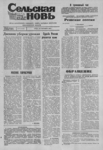 В тревожный час СЕГОДНЯ В НОВОСИБИРСКЕ НАЧНЕТ РАБОТУ СЪЕЗД СОВЕТОВ НАРОДНЫХ ДЕПУТАТОВ СИБИРИ И ДАЛЬНЕ ГО ВОСТОКА, КОТОРЫЙ рассмотрит политическое ПОЛОЖЕНИЕ В РОССИЙСКОЙ ФЕДЕРАЦИИ, ДАСТ ЕМУ ОЦЕНКУ И ПОПЫТАЕТСЯ НАИТИ ВЫХОД ИЗ КРИЗИСНОЙ СИТУАЦИИ. новосибирский областной совет народных ДЕПУТАТОВ ДВАДЦАТЬ ПЕРВОГО СОЗЫВА Решение сессии ОРГАН КАРАСУКСКОГО РАЙОННОГО СОВЕТА НАРОДНЫХ ДЕПУТАТОВ НОВОСИБИРСКОЙ ОБЛАСТИ Газета основана 3 октября 1930 г. Дневник уборки урожая Судьба России Как ни ругают синоптиков за «проколы» в прогнозах по годы, но на сей раз они не ошиблись. Не ошиблись, к со жалению, т к. начало последней сентябрьской декады получи лось ненастным. К холоду и дождю добавился еще мокрый снег, что резко ухудшило об становку на осенних полях. В ряде хозяйств уборка колесо- .вых в период с 22 по 27 сен тября практически не продвину- лась вперед ни на шаг. Не слу чайно прирост на жатве за последнюю пятидневку оказал ся мизерным: на косовице он составил всего 2286 гектаров, на обмолоте — 3046 га. Кое-где наметился сущест венный разрыв между свалом и подборкой валков, что в ус ловиях неустойчивой погоды чревато потерями зерна. Как видно в сводке, наиболее зна чителен он в АО «Российское» и «Морозсвское», в агрофирме «Маяк». А вот в АО «Шилово- Курьинское» его почти нет, МНЕНИЕ КАРАСѴЧАН Женщина старше 60 тн лет, не представилась: Я за Ельци на. но боюсь что-то говорить. Вдруг все изменится. Придут коммунисты и меня повесят. А может и ты коммунист? А. Макаров, уроженец Ка- расука, работает на Севере: Радио говорит то одно, то дру гое. трудно сориентироваться. Если Ельцина поддерживает за граница, то и нам надо прийти к единоначалию. Ему давно надо было так поступать. А. Кошелев, пенсионер: Ра ботать начал подростком в вой ну, но такого развала еще не видел. Прилавки магазинов пусты, какой это рынок. Пра вители, если не могут найти общего языка, пусть уходят, а депутаты остаются, я за Сове ты. Получал пенсию 113 руб лей, мог жить, теперь 27 ты сяч, а жить ' невозможно. Го ворят, работали за страх, а я говорю за совесть, потому построили Черемушки, второй железнодорожный путь. С. Пойаморев, старший элек тросварщик ремонтно-восста новительного поезда: Президент действует правильно, но кон фликт может перерасти в граж данскую войну. В. Волошин, плотник МПМК: Что происходит, пока сказать трудно. Пока же ничего хоро шего, ничего не ясно. П. Емельянов, пенсионер: Указ может спровоцировать войну в стране. Они там бушу ют да добавляют цены. Пен ОБЪЯВЛЕНИЯ С 1.10 93 г. фермерские хозяйства Шестопалова и Горохова начинают свободную реализацию капусты сорт «Подарок» (позд няя) по ценам ниже рыночных. Хозяйства находятся на берегу оз. «Стеклянное», заезд со стороны Чебачьего или разъезда «Стеклянное». Открывает творческий сезон Театр - студня Дома культуры железнодорожников. Организационная встреча состоится 4 ок тября в 20 часов, в помещении ДКЖ. Режиссер В. Горбунов приглашает всех желающих и актеров, игравших в его поста- Н °ТчЛЁНАМ САДОВОДЧЕСКОГО ОБЩЕСТВА «ФИАЛКА» В субботу, 2 октября в 11 часо в в Красном уголке локомотивно го депо состоится отчетно-выборное собрание. Также будет производится выдача свидетельств о праве собственности на землю. № 78 (8059) СРЕДА, 29 СЕНТЯБРЯ 1993 г. От 23.09.93 г. Новосибирск ___ _________ . _______ _____ сессия девятнадцатая ОБ УКАЗЕ ПРЕЗИДЕНТА РОССИЙСКОЙ ФЕДЕРАЦИИ Б. 