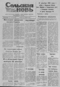 ОРГАН КАРАСУКСКОГО РАЙОННОГО СОВЕТА НАРОДНЫХ ДЕПУТАТОВ НОВОСИБИРСКОЙ области Газета основана 2 октября 1930 г. Последнее заседание малого Совета В среду, 27 октября, состо ялось последнее заседание ма лого Совета райсовета народ ных депутатов, на котором бы ли рассмотрены некоторые во просы жизни района. Об итогах уборки урожая информацию дал гл. агроном управления сельского хозяй ства Г. Золотухин. Кроме час ти площадей подсолнечника, на полях района убрано все. Урожай зерновых составил 11 ц с га. Овощи дали са мый высокий урожай в облас ти. Семян под будущий урожай припасено полностью, надо их доводить теперь до посевных кондиций. А кормов заготов лено как никогда много — по 27 к. ед. на условную голову. Начальник госинспекпии по закупкам и качеству сельхоз продуктов В. Борблик сообщил * * * 05 оплате за помещение в медвытрезвитель Малый Совет Карасукско?о районного Совета народных депутатов решил: 1. Утвердить плату за по мещение в медвытрезвитель в размере 80 проц, от мини мального размера оплаты тру да с округлением до сотен. На территории района Советов больше нет С выходом очередного ука за президента Б. Ельцина о прекращении деятельности районных Советов, на терри тории Карасукского района Советов больше нет. Как из вестно, немного ранее была прекращена деятельность сель І'І в областной Совет Ій декабря В среду, 27 октября, в Но восибирске состоялось засе дание областного малого Со вета народных депутатов, на котором обсуждался вопрос о выборах в областной предста вительный орган. По дате выборов в общем-то и спорить было нечего, ведь есть решение облсовета о том, что выборы в областной орган проводятся одновременно с выборами в Госдуму. Правда, администрация области про сила перенести дату, мотиви руя тем, что и без областных выборов очень напряженно идет подготовка и избиратели могут просто запутаться. Ар гумент веский. Но еще более весомые ар гументы были у депутатов. Есть опасность? что измучен ные предвыборной кампанией Подписка продлена До 15 ноября продлен срок подписки на центральные га зеты и журналы, на издание издательства «Известия» — № 87 (8038) СУББОТА, 30 ОКТЯБРЯ 1993 г. РОВД СООБЩАЕТ 12 декабря 1993 года — выборы в Федеральное Собрание (Совет Федерации и Государственная Дума) и всенародное голосование по проекту Конституции РФ Профсоюзы и выборы — - - - - - - - - - - - - Поддержали кандидатов На вопросы нашего корреспондента отвечает председа тель райкома профсоюза работников АПК района В. Чер нышов. малому Совету, что правитель ство и наш элеватор задолжа ли хлеборобам района за уже взятое у них зерно 1 млрд. 675 млн. руб. С удовлетворением была вос принята информация зам. гл. райадминистрации И. Голова- того о выполнении депутатско го запроса В. Лобанова и А. Новак о тепловом режиме в средней школе № 1. За счет сооружения автономной ко тельной, действующей на прин ципе теплоотбора от воды из глубинной скважины и ее по догрева, температура в школе нынче нормальная. Как было отмечено, у этого новшества неплохая перспектива. На малом Совете были ре шены некоторые вопросы, свя занные с выборами, и другие. 2. Решение вступает в силу с 1 ноября 1993 года. * 3. Решение Ліалюге' Совета № 5 от 3.02.93 г. считать ут ратившим силу. Председатель Совета П. П. ГРИНЧЕНКО. ских и городского Советов. В области пока функционирует областной Совет. Следовательно, вся пол