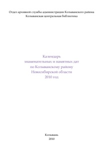 Отдел архивной службы администрации Колыванского района Колыванская центральная библиотека Календарь знаменательных и памятных дат по Колыванскому району Новосибирской области 2010 год Колывань 2010