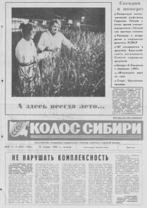 А здесь всегда лето Сегодня в номере: О Концепция эконо мической реформы Гавриила Попова с точки зрения ученых- аграрников —беседа «за круглым столом» о Рассказы о канди датах в н а родные депутаты РСФСР о 157 кандидатов в * депутаты Краснооб с к о г о поселкового С о в е т а народных депутатов о Беседа с Б. Ельциным в редакции «М Н » о « Ф е р м е р а » ждут на селе о Спорт: бронзовые призеры Лаборатория селекции мягкой яровой пшеницы АНИИЗиСа ве дет исследования по трем основ ным направлениям: создание сор тов интенсивного типа для вос точных зон края полуинтенсивно- го — для степного Алтая, а также создание сортов, устойчивых к грибковым заболеваниям Ре зультат работы ученых — сорта «вега», «алтайская-81», в государ ственном испытании находятся «алтайская-50», «алтайская-81». На снимке: младший научный сотрудник Т. Г. Горбачева и агро ном Т. А. Александровская Пролетарии всех стран, соединяйтесь! ОРГАН ПАРТКОМА, ПРЕЗИДИУМА И ОБЬЕДИНЕННОГО ПРОФКОМА СИБИРСКОГО ОТДЕЛЕНИЯ ВАСХНИЛ №№ 3 - 4 (8 3 4 -8 3 5 ) 25 января 1990 г., четверг Газета выходит два раза в месяц. Цена 4 коп. НЕ НАРУШАТЬ КОМПЛЕКСНОСТЬ В КРАСНОЯРСКОМ н и и с х СОСТОЯЛОСЬ РАБОЧЕЕ КО ОРДИНАЦИОННОЕ СОВЕЩА НИЕ ПО ИНТЕНСИВНОЙ ТЕХНОЛОГИИ ВОЗДЕЛЫВА НИЯ ПОЛЕВЫХ КУЛЬТУР В ВОСТОЧНОЙ СИБИРИ. Уже пять лет прошло с того времени, как начато освоение интенсивных технологий возде лывания полевых культур на по лях кслхсзсв и совхозов. На- коплэн производственный опыт, проводились научные исследова ния в различных почвенно-кли матических зонах. Освоение ин тенсивных технологий позволило увеличить валовые сборы зерна. Так, а Красноярском крае в среднем за 5 лет урожайность яровой пшеницы, возделываемой по интенсивной технологии, • со ставила 20,6 центнера, по зо нальной — 14,7 центнера. В среднем за эти годы получено дополнительно 470 тысяч тонн зерна пшеницы. 8 Хакасской ав тономной области урожайность пшеницы по интенсивной техно логии в 1989 году — 18,9 цент нера, по зональной — 15,9 цент нера. В СПХ «"Байкальское» Бу рятского НИИСХ на площади 600 гектаров пшеница «селен га» сформировала урожай по 39 центнеров с гектара, что на 12,5 центнера выше, чем по зональ ной технологии. ;Но отдача от интенсивной технологии пека еще невысокая. Рядом с урожайностью в 25— 30 центнеров соседствует 12— 15, а то и того меньше. Глазная причина в том, что нарушается комплексность технологических приемов, составляющих единое иэлое. Кроме того, качество зер на по-прежнему не отгечает (а большинстве лет) сильным пше ницам. В 1989 году, например. в Красноярском крае заготовле но высококачественного зерна немногим более 100 тысяч тонн .. Необходима более детальная, усовершенствованная интенсив ная технология, .включающая уборку и послеуборочную рабо ту с зернО'М. чтобы зерно на этих этапах не теряло своих сильных свойств. С этой целью и собрались не посредственные исполнители ис следований по интенсивным тех нологиям из Бурятского и Ир кутского НИИСХов. Тувинской, Хакасской, Казачинской. Бого- тольской, Солянской опытных станций в Красноярский научно- исследоеательский институт сельского хозяйства — коорди натор по Восточной Сибири. Каждый из участников рабоче го совещания доложил об итогах научных исследований в 1989 году и внес предложения по усо вершенствованию программы на будущее, рассказал, как осваи ваются интенсивные технологии,' Равноду