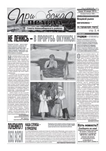 8 №4 (9394) 22 января 2014 г. Ïðèîáñêàÿ ïðàâäà ТВ-программа СУББОТА, 1 ФЕВРАЛЯ ВОСКРЕСЕНЬЕ, 2 ФЕВРАЛЯ 2 КАНАЛ ПЕРВЫЙ 03.50 «ЗИМНИЙ ВЕЧЕР В ГАГРАХ». Х/ф. (СССР,1985). 05.00Новости. 05.10 «ЗИМНИЙ ВЕЧЕР В ГАГРАХ». Х/ф. 05.35 «Земля с высоты птичьего по- лета».Д/ф. 06.40 «СлужуОтчизне!» 07.15 «СОФИЯПРЕКРАСНАЯ».М/с. 07.40 «СМЕШАРИКИ.ПИН-КОД».М/с. 07.55 «Здоровье».16+ 09.00Новости. 09.15 «Непутевые заметки».12+ 09.35 «Пока все дома». 10.25 «Фазенда». 11.00Новости. 11.15 «БЕЛОЕ СОЛНЦЕ ПУСТЫНИ». Х/ф. (СССР,1969). 12.55 «Екатерина Максимова. Вели- кая».Д/ф.12+ 14.00 «Новости с субтитрами». 14.15 «ВРЕМЯДЛЯДВОИХ».Х/ф. (Рос- сия/Украина, 2011).16+ 18.10 «Кубок профессионалов». 20.00 «Время». 21.00 «Повтори!» 16+ 23.20 «ЗНАКОМСТВОСФАКЕРАМИ-2». Х/ф. (США, 2010).16+ 01.10 «КАБИНЕТНЫЙ ГАРНИТУР». Х/ф. (США,1957). 03.15 «Контрольная закупка». 8 КАНАЛ РОССИЯ 6.10 Х/ф «Один из нас». 8.20ВсяРоссия. 8.30Сам себе режиссер. 9.20 «Смехопанорама» Евгения Пе- тросяна. 9.50 Утренняя почта. 10.30Сто к одному. 11.20 Местное время. Вести-Москва. Неделя в городе. 12.00Вести. 12.10 Городок. 12.45 Х/ф «Чернаяметка». [12+] 15.00Вести. 15.20Местное время.Вести-Москва. 15.30 Х/ф «Чернаяметка». [12+] 17.05Смеяться разрешается. 19.00 Х/ф «Букет». [12+] 21.00Вести недели. 22.30 Х/ф «Я буду рядом». [12+] 0.30 «ВоскресныйвечерсВладимиром Соловьёвым». [12+] 2.20 Х/ф «Американка». [12+] 4.20 «Планета собак». 4.50 Комната смеха. 4 КАНАЛ ТВ-3 06.00Мультфильмы. 0+ 08.00 «Новосибирская неделя».16+ 08.20Мультфильмы.12+ 09.30 «Сказка о потерянном времени». Х/ф.СКАЗ. (СССР,1964). 0+ 11.15 «Двенадцать катастроф». Х/ф. ФАНТ (Канада, 2012).12+ 13.00 «Буря в Арктике». Х/ф. ФАНТ. (Австралия, 2010).16+ 14.45 «Суррогаты». Х/ф. ФАНТ. (США, 2009).16+ 16.30 «Служители закона». Х/ф. ТРИЛ. (США,1998).16+ 19.00 «Прецедент».16+ 19.30 «Вопреки».16+ 20.00 «Ночной рейс». Х/ф. ТРИЛ. (США, 2005).16+ 20.45 «Тринадцать друзей Оушена». Х/ф. КОМ. (США, 2007).16+ 23.15 «Дитя тьмы». Х/ф. ТРИЛ. (США, 2009).16+ 01.45 «Кошмар на улице Вязов». Х/ф. УЖ. (США, 2010).16+ 03.45 «Парковка». Х/ф. ТРИЛ. (США, 2007). 16+ 05.45Мультфильмы. 0+ 6 КАНАЛ ТНТ 07.00 «СЧАСТЛИВЫВМЕСТЕ». Т/с.16+ 08.00 «Слагтерра».М/с.12+ 08.25 «Могучие рейнджеры: мега- форс».М/с.12+ 08.55 «ПерваяНациональная лотерея». Лотерея.16+ 09.00 «Дом-2. Lite».16+ 10.00 «Битва экстрасенсов».16+ 11.00 «Школа ремонта».12+ 12.00ComedyWoman.16+ 13.00 «Перезагрузка».16+ 14.00 «Comedy Баттл. Новый сезон». 16+ 15.00 «Битва титанов». Х/ф. ПРИКЛ. (США, 2010).16+ 17.00 «Пункт назначения». Х/ф. УЖ. (Канада/США, 2000).16+ 18.50ComedyClub.Лучшее.16+ 19.30ComedyClub. Exclusive.16+ 20.00 «Битва экстрасенсов».16+ 21.30StandUp.Лучшее.16+ 22.30 «НашаRussia».16+ 23.00 «Дом-2. Город любви».16+ 00.00 «Дом-2.После заката».16+ 00.30 «БЕЛАЯ МГЛА». Х/ф. ТРИЛ. (Ка- нада/США, 2009).16+ 02.30 «Дом-2. Город любви».16+ 03.30 «Блэйд». Х/ф. БОЕВ. (США, 1998).16+ 05.30 «СЧАСТЛИВЫВМЕСТЕ».Т/с.16+ 06.00 «Планеташина».М/с.12+ 10 КАНАЛ СТС 06.00Мультфильмы. 0+ 07.35 «ПИНГВИНЕНОК ПОРОРО». М/с. 6+ 07.55 «СМЕШАРИКИ». М/с. 0+ 08.30 «ФЛИППЕРИЛОПАКА».М/с. 6+ 09.00 «ТОМИДЖЕРРИ».М/с. 6+ 09.10 «ПАКМАН В МИРЕ ПРИВИДЕ- НИЙ».М/с. 6+ 10.00 «АЛИСА ЗНАЕТ, ЧТО ДЕЛАТЬ!» М/с. 6+ 10.30 «Квадратура». 10.35 «ВЭЛИАНТ».М/ф.12+ 12.00 «Снимите это немедленно!»16+ 13.00 «Шоу «Уральских пельменей». 16+ 14.15 «КАК ПРИРУЧИТЬ ДРАКОНА». М/ф.16+ 16.00 «6 кадров».16+ 17.15 «КОВБОИ ПРОТИВ ПРИШЕЛЬ- ЦЕВ». Х/ф. ФАНТАСТИКА (США, 2011). 16+ 19.30 «Шоу «Уральских пельменей». 16+ 21.00 «СОКРОВИЩЕ НАЦИИ. КНИГА ТАЙН». Х/ф.БОЕВИК (США,2007).16+ 23.25 «Шоу «Уральских пельменей». 16+ 00.50 «ДЕВУШКА-САМУРАЙ». Т/с. ДРА- МА (США/Канада, 2008).16+ 01.45 «БОЛЬШЕ, ЧЕМ ДРУГ». Х/ф. КО- МЕДИЯ (США, 2010).16+ 03.45 «ДВА БРАТА». Х/ф. ДРАМА (Франция/Великобритания,2004).16+ 05.45 «Музыка наСТС».16+ 12 КАНАЛ НТВ 06.05 «АГЕНТ ОСОБОГО НАЗНАЧЕ- НИЯ». Т/с. ДЕТЕКТИВ (Россия, 2012). 16+ 08.00 «Сегодня». 08.15 «Русское лото плюс». Лотерея. 0+ 08.45 