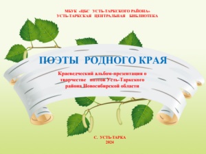 ПОЭТЫ РОДНОГО КРАЯ Краеведческий альбом-презентация о т ворчеств е поэтов Усть-Таркского района Новосибирской области МБУК «ЦБС УСТЬ-ТАРКСКОГО РАЙОНА» УСТЬ-ТАРКСКАЯ ЦЕНТРАЛЬНАЯ БИБЛИОТЕКА С. УСТЬ-ТАРКА 2024