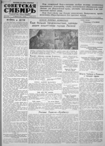 С О В Е Т В К Ж Я С И Б И Р Ь 2 8 Я Н В А Р Я 1 9 43 г . № 2 2 . От С о в е т с к о го Инфо рмбюро В Е Ч Е Р Н ЕЕ С О О Б Щ Е Н ИЕ 26 Я Н В А РЯ Войска Д о н с к о го фронт а, п р о д о л ж ая «а., мунднрованнем, горючим, боеприпасами с т у п л е н ие против немецко-фашистских в о й с к, о к р у ж е н н ых в районе Ст а л ин г р а д а, п о с ле оже с т о ч е н ных боев, п р е о д о л ев м я о . г о чи с л е нные мощные у к р е п л е н ия п р о т и в, н и к а, з а кончили в основном л и к в и д а ц ию о к р у ж е н н ой группировки. О с т а л и сь е ще ликвидированными д в е р а з р о з н е нные и иг л и р о в а нные д р у г от д р у га н е б о л ьшие группы противника о б щ ей чи с л е нно с т ью ие б о л ее 12.000 ч е л о в е к, нз коих одна группа н а х о д и т ся с е в е р н ее Ст а л ин г р а да и д р у г ая б л и же к ц е н т р а л ь н ой части Ст ал и н г р а д а. Обе э ти группы противника обречены, и л и к в и д а ц ия их — в о п р ос двух— т р ех д н е й. 26 января в ой с ка Юг о - З а п а д н о г о, Южного, С е в е р о - К а в к а з с к о г о, Во р о н ежс к о г о, В о л х о в с к о го и Л е н и н г р а д с к о го фронтов в е ли н а с т у п а т е л ь н ые бои на п р е ж н их нап р а в л е н и я х. 25 января частями нашей р а з л и ч н ых у ч а с т к ах фронта у н и ч т о ж е но или п о в р е ж д е но 10 немецких т а н к о в, с в ы . ше 200 автомашин с войсками и грузами, п о д а в л ен о г о нь 11 а р т и л л е р и й с к их б а т арей, в з о р в а но 8 с к л а д ов боеприпасов, разбит ж е л е з н о д о р о ж н ый эше лон, р а с с е я но и ч а с т ью у н и ч т о ж е но д о 2 б а т а л ь о н ов п е х оты противники. Н а Южном фр о н те с о в е т с к ие в ой с ка в е - л и н а с т у п а т е л ь н ые бои, а иа о т д е. у ч а с т к ах о т би в а ли к он т р а т а ки п о д оше дших р е з е р в ов про т ивник а. В р а й о не о д н о го н ас е л е н н о го п у н к та бойцы Н . с к о го с о е д и н ения отбили д в е о ж е с т о ч е н н ых к о н т р а т а ки крупных с ил н еме цкой п е х о ты и т а н к о в. Н а ши б о йцы подбили и с о ж г ли 14 немецк и х т а н к о в. В з я то в п л ен 120 в р а ж е с к их с о л д а т н о фи ц е р о в. З а х в а ч е но 65 а в т о м ашин с груз ами. Н а д р у г ом у ч а с т ке наши ч а с ти п р о д в и н у л и сь вп е р ед и з а н я ли н е . с к о л ь ко н а с е л е н ных п у н к т о в. З а х в а ч е ны т р офеи в В о й с ка Юг о - З а п а д н о го фронта п р о д о лж а ли н а с т у п л е н и е, а ч а с т ью с и л з а к р е п л ял и с ь на д о с т и г н у т ых р у б е ж ах и о т би в а ли к о н т р а т а ки противника. Ч а с ти Н . с к о г о с о ед ин е ния с л о м и ли с о п р о т и в л е н ие г и т л е р о вц е в и заняли 5 н а с е л е н н ых п у н к т о в. Уничт ож е ны 2 р о ты н е м е ц к ой п е х о т ы, т а нк и с амо х о дн ая п у ш к а. Н а д р у г ом у ч а с т ке т а н - к и с ты п од к ома ндо в а ни ем т о в . Мо р о з о ва и с т р е б и ли д о 400 н е м е ц к их с о л д ат и о ф иц е р ов и в з я ли 50 пленных. З а х в а ч е но 40 автомашин, с к л а д с в е л о с и п е д а ми, 3 э ш елона с военным и м у щ е с т в о м, с к л а д ы с о б - Войска В о р о н е ж с к о го фронта п р о д о л ж а. ли н а с т у п а т е л ь н ые операции на прежних направлениях; Бойды Н - с к ой ча с ти при п о д д е р ж ке артиллерии и т а н к ов выбили противника из трех в а ж н ых у з л ов с о . противления. На поле боя о с т а л о сь д о 600 в р а ж е с к их т рупов, 9 подбитых т а н к ов и 37 автомашин. В з я то в плен 170 г и т л е р о вцев. З а х в а ч е ны б о л ь ш ие с к л а ды в о о р у ж ения и боеприпасов. Войска С е в е р о - К а в к а з с к о го фронта с боями пр о д в и г а ли сь в п е р ед и з а н я ли р яд населенных пунк тов. На п о д с т у п ах к к р у п , ному на с е л енному п у н к ту нем