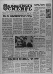 ТТрЬ летарии всех с т р а н , соединяйтесь!' С О В Е Т С К А Я О Р Г А Н Н О В О С И Б И Р С К О Г О О Б К О М А К О М М У Н И С Т И Ч Е С К О Й П А Р Т И И С О В Е Т С К О Г О С О Ю З А И О Б Л А С Т Н О Г О С О В Е Т А Д Е П У Т А Т О В Т Р У Д Я Щ И Х С Я Г о д и з д а н и я 5 3 - й № 2 6 8 ( 1 5 5 7 6 ) « 13 н о я б р я 1 9 7 1 г . , с у б б о т а Ц е н а 2 к о п . С Л А В А Г Е Р О Я М Х Л Е Б Н О Й С Т Р А Д Ы Б ю р о о б к о м а К П С С , и с п о л к о м о б л а с т н о г о С о в е т а д е п у т а т о в т р у д я щ и х с я и п р е з и д и у м о б л с о в п р о ф а п о д в е л и и т о г и в с е р о с с и й с к о г о с о ц и а л и с т и ч е с к о г о с о р е в н о в а н и я к о л х о з о в , с о в х о з о в и р а й о н о в н а у б о р к е у р о ж а я и п р о д а ж е х л е б а г о с у д а р с т в у в 1 9 7 1 г о д у . П о б е д и т е л я м и с о р е в н о в а н и я п р и з н а н ы : ШКОЫЛКОМУНИСТИЧЕСКОГО ТРУДА На Н о в о с и б и р с к о м о л о в я н н о м к о м б и н а т е д а в н о п о л ь з у е т с я з а с л у ж е н н о й с л а в о й с м е н а э л е к т р о п л э - в и л ы ц и к о в , в о з г л а в л я е м а я с т а р ш и м м а с т е р о м М. П. С а н а т и н ы м . Э т о к о л л е к т и в к о м м у н и с т и ч е с к о г о т р у д а , г д е к а ж д ы й д у ш о й б о л е е т з а и н т е р е с ы п р о и з в о д с т в а , е г о в ы с о к у ю э к о н о м и ч е с к у ю э ф ф е к т и в н о с т ь . Чт о ни м е с я ц , т о в с м е н е М. П. С а н а т и н а в ы с о к а я в ы р а б о т к а , б о л ь ш а я э к о н о м и я м а т е р и а л о в и э л е к т р о э н е р г и и . С е к р е т п о с т о я н н о г о у с п е х а п р о с т — м н о г и е р а б о ч и е с м е н ы , о с о б е н н о р а б о ч и е о с н о в н ы х п р о ф е с с и й , н е п е р в ы й г о д з а н и м а ю т с я в ш к о л е к о м м у н и с т и ч е с к о г о т р у д а . Р у к о в о д и т е ю с т а р ш и й м а с т е р М. П. Са- нат ин . Главный п р и н ц и п о б у ч е н и я в ш к о л е — п е р е д а ч а п е р е д о в о г о о п ы т а . Д е в и з « У м е е ш ь с а м — Научи т о в а р и щ а ! » с т а л з д е с ь н е т о л ь к о р е а л ь н о с т ь ю , н о н ж и з н е н н о й н е о б х о д и м о с т ь ю . П о ч е т н ы е м е т а л л у р г и Н. Л и т в и н о в , Н. А к с е н о в , м н о г и е в е т е р а н ы т р у д а н а с т о й ч и в о и к р о п о т л и в о п е р е д а ю т с в о й Опыт м л а д ш и м т о в а р и щ а м , уча т их н е т о л ь к о у м е л о р а б о т а т ь , н о н с ч и т а т ь н а р о д н у ю к о п е й к у , б ы т ь э к о н о м и с т а м и на с в о е м р а б о ч е м м е с т е , б е р е ж л и в ы м и в б о л ь ш о м и м а л о м . Ш к о л ы к о м м у н и с т и ч е с к о г о т р у д а п р о ч н о в о ш л и в ж и з н ь м н о г и х п р о и з в о д с т в е н н ы х к о л л е к т и в о в . Лю д и о х о т н о п о с е щ а ю т их, в ы р а ж а я г о р я ч е е с т р е м л е н и е у ч и т ь с я р а б о т а т ь и ж и т ь п о - к о м м у н и с т и ч е с к и . На о л о в о к о м б и н а т е , н а п р и м е р , в п р о ш л о м г о д у д е й с т в о в а л о б о л е е 40 та к их ш к о л : в с м е н а х , б р и г а д а х , на у ч а с тк а х . Р у к о в о д и л и им и о п ы т н ы е с п е ц и а л и с т ы , к о м а н д и р ы п р о и з в о д с т в а — л ю д и , х о р о ш о з н а ю щ и е э к о н о м и к у , п е р с п е к т и в ы п р е д п р и я т и я . В н ы н е ш н е м у ч е б н о м г о д у з а в к о м п р о ф с о ю з а п о д р у к о в о д с т в о м п а р т и й н о г о к о м и т е т а с о з д а л 44 ш к о л ы к о м м у н и с т и ч е с к о г о т р у д а , в к о т о р ы х б у д у т з а н и м а т ь с я 852 ч е л о в е к а . С о с т о я л и с ь у ж е п е р в ы е з а н я т и я . З а в о д с к о й к о м и т е т п р о ф с о ю з а к о н т р о л и р у е т , ч т о б ы х о р о ш е й б ы л а я в к а с л у ш а т е л е й , ч т о б ы з а н я т и я п р о х о д и л и на в ы с о к о м у р о в н е , п р и н о с и л и к а к м о ж н о б о л ь ш е п о л ь зы . Б о л ь ш о й о п ы т р у к о в о д с т в а ш к о л а м и к о м м у н и с т