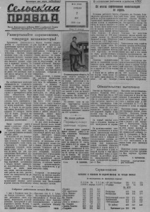 НА ФЕРМАХ КОЛХОЗА «ДУТЬ ЛЕНИНА» В борьбе за сохранение телят В выполнении поставленной перед работниками сельского хозяйства задачи по увеличе вию производства продуктов животноводртва большое место отводится выращиванию молодняка скота. Крепкий и здоровый ыолодвяк— это залог пополнения общественного стада, повышения его продуктивности. Выращивание молодняка крупного рогатого скота—самая кропотливая работа в животноводстве. Телята в раннем возрасте очень восприимчивы к заболеваниям, а если им не созданы нормальные условия да и плохая забота— может быть и падеж. К этому важному делу правильно подошли животноводы колхоза «Путь Ленина». Телятницами здесь работают лучшие люди, имеющие хороший опыт. Так, например, на первой ферме в профилактории работает А. Сычева. Ова с начала зимовки выпоила 204 теленка до 15 дневного возраста и передала их в старшие группы в хорошем состояни . Еще в начале зимовки В. Ивкова приняла 33 теленка и всех сохранила. Закончила в феврале набор группы М. Сушяина. Все телята ее группы здоровы и хорошо растут. Без случаев отхода выращивают телят Н. Турнаева, А. Захарова. В телятниках всегда есть минеральная подкормка. При переводе телят на поение обратом им дают ежедневно ов-, сяную муку. Богатая белками, она заменяет молоко, даваемое им ранее. Но основной причиной успеха животноводов является, наряду с качественным кормлением, хороший уход, постоянная забота телятниц о молодняке. Благодаря добросовестному труду передовые телятницы за прошедшее время зимовки не допустили ни единого случая падежа. Е. ВАСИЛЬЕВ. Красное знамя—передовым В предмайском соревновании среди животноводов колхоза «Путь Ленина» по увеличению надоев молока и сохранению поголовья победу одержали работники первой фермы. За четыре месяца здесь надоено от каждой из 222 фуражных коров по 561 килограмму молока. А среди животноводов первой фермы первенство завоевали работники второго гурта. Здесь от 106 коров надоено по 576 килограммов. Передовые доярки фермыП. Тюрина, Н. Крыш- ко, 3. Ряшина, М. Алаторцева за этот период надоили по 660—730 килограммов. Большая заслуга в повышении надоев молока принадлежит скотникам фермы М. Сушкину, Н. Кононенко, В.Ряшину, В. Скоропад и другим. Онина протяжении всей зимовки добросовестно ухаживают за скотом, своевременно его поят и кормят. Даже в дни весенней распутицы в помещениях чисто и сухо. Коровам кроме сена и соломы дается овсяная мука, силос, картофель в зависимости от удоев. Все это позволило поднять удои до 7—7,2 килограмма в день от коровы и добиться их хорошей упитанности. Большинство доярок этой фермы за увеличение надоев помимо основной заработной платы получили премиальные. Доярке Н. Крышко начислено 387 рублей, П. Тюриной-315, 3. Ряшиной—268 и М. Ала- торцевой—291 рубль. Скотники М. Сушкин и Н. Кононенко, обеспечившие самый высокий надой, получат по 324 рубля каждый, а В. Ряшин и В. Скоропад по 184—192 рубля. Премии получат также и многие другие работники ферм. На совещании животноводов колхоза коллек!Иву передовой фермы вручено переходящее красное знамя. В. ВОРОБЬЕВ. Секретарь парторганизации. Ставропольский край. Животноводы колхоза «Пролетарская воля» Пятигорского района успешно борются за выполнение поставленной партией задачи—в ближайшие годы догнать США по производству мяса, молока и масла на душу на
