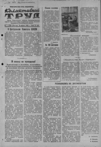 (1 Г ПРОЛЕТАРИИ ВСЕХ СТРАН, СОЕДИНЯЙТЕСЬ! ICbUMJcmutouai п г \ p i r JSmL ш мШр Орган Карасукского райкома Коммунистической партии Советского Союза и районного Совета депутатов трудящихся Новосибирской области N° 7 ГрБОЗ') |Пятница, 16 января 1959 г, t Цвиа 15 коп. В Центральном Комитете ВЛКСМ ЦК ВЛКСМ совместно с министерством сельского хозяйства СССР решил продолжить Всесоюзное социалистическое соревнование комсомольских организаций, комсомольцев и молодежи, пионерских дружин, пионеров и школьников за выращивание высоких урожаев кукурузы в 1959 году. В основу соревнования должна быть положена борьба за получение 30 центнеров зерна этой культуры в початках и 500— 6G0 центнеров зеленоймассы кукурузы, а в районах недостаточного увлажне • ния не менее 300 центнеров с гектара, за максимальное внедрение комплексной механизации, снижение затрат на производство зерна и силосной массы этой культуры. Главной особенностью выращивания кукурузы в 1959 году должна стать забота о всемерномвнедрении комплексной механизации на ее возделывании. Утверждены условия соревнования и премии для победителей. (ТАСС). Мы вступили в первый год семилетки. Наряду с другими большими задачами по подъему всего народного хозяйства в наступившее семилетие нам предстоит укрепить животноводство, удвоить, утроить доходы от этой отрасли сельского хозяйства. Сейчас всем ясно, что добиться этого невозможно без создания прочной кормовой базы, важное место в которой принадлежит кукурузе.. Впрошлом году многие комсомольцы имолодежь колхозов и совхозов нашего района весной начали поход за получение высоких урожаев этой культуры. Но надо прямо сказать, чтоне у всех хватило настойчивости, решимости бороться с трудностями, да и умения. Поэтому не все довели задуманное до конца. Несколько кукурузоводческих звеньев было создано комсомольцами и молодежью в совхозе им. Дзержинского, но ниодно из них так и не выполнило всего комплекса мероприятий по выращиванию этой культуры. Звенья распадись. Это же произошло и в колхозе им.Тельмана и в ряде других хозяйств. Но мы имеем немало замечательных примеров самоотвер женного труда молодых кукурузоводов. Комсомолец Иван Крупский в колхозе «40 лет Октября» на площади 150 гек таров вырастил урожай кукурузы по 320 центнеров. Комсомолец совхоза «Октябрь» АнатолийЛебедев получил урожай зеленой массыэтойкультуры по 300 центнеров с гектара в среднем с площади 83 гектара. Поистине героический труд вложили в выращивание кукуВ поход за кукурузу! Комсомольцы и молодежь, включайтесь во Всесоюзное социалистическое соревнование за получение высоких урожаев кукурузы рузы богословские школьники. И вот результат: 5 тысяч центнеров зеленой массы с 10 гектаров! Пять школьниц-пио- нерок Центральный Комитет комсомола в день 40-летия ВЛКСМ наградил значками за получение высоких урожаев кукурузы. Неплохие урожаи кукурузы получили у нас звеньевые Т. Апаев в колхозе «Жол Сталина», А. Гаврилов в артели «Вперед к коммунизму» и В. Воронов—в имениЖданова А всего комсомольцами района в прошлом году выращена кукуруза на площади 509 гектаров. С этого участка заложено силоса 141800 центнеров. Средний урожай составил 250 центнеров. Центральный Комитет комсомола продолжил и на этот год социалистические соревнования молодых кукурузоводов за выращивание кукурузы на силос и назерно. 