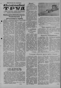 ПРОЛЕТАРИИ ВСЕХ СТРАН, СОЕДИНЯЙТЕСЬ! ICbUueJcmu&mu Орган Карасукского райкома Коммунистической партии Советского Союза и районного Совета депутатов грудящихся Новосибирской области У»23 (25Ф I Пятница, 20февраля195г9. |Пена 15 коп. Рационально и расходовать корма Высокие обязательствасторону, а сейчас вынуждены приняли на себя животноводы района на 1959 год по производству продуктов животноводства. Боевая задача не только животноводов, но и всех трудящихся района—с честью справиться с обязательствами, сдержать данное слово. Выполнение их во многом зависит от того, как благополучно пройдет зимовка скота, а это, в свою очередь, зависит от обеспеченности скота кормами, от того, как рационально они расходуются в течение всего стойлового периода. Факты показывают, что в этом вопросе в районе дела обстоят далеко не благополучно. В некоторых хозяйствах допускаются факты бесконтрольности, бесхозяйственности, разбазаривания кормов. Если на начало зимовки в районе имелось на условную голову почти по 26 ц грубых кормов, в том числе по 10 ц сена и более чем по 7 тонн силоса на каждую корову и нетель, то на 1 января 1959 года уже числился остаток грубых кормов по 12 ц на условную голову, в том числе сена—по 6 ц, а силоса—по 3,1 тонны. Отсюда нетрудно сделать вывод, что в результате бесхозяйственности колхозы и совхозы допустили большой перерасход кормов и что их в оставшиеся месяцы надо расходовать экономно, Особенно плохо обстоит дело с кормами в колхозе им. Жданова, где почти не осталось сена. Очень мало кормов осталось в совхозе им. Дзержинского, в колхозах „Путь Ленина*, им. Тельмана, „Вперед к коммунизму*. В колхозе „Вперед к коммунизму* с осени солому продавали на покупать в других хозяйствах. Такое положение с кормами создалось потому, что руководители колхозов, бригад и ферм совхозов бесхозяйственно отнеслись к распределению и скармливанию кормов, не пресекали факты разбазаривания; с осени корма не были точно учтены и не переданы на материальную ответственность фуражирам, отпускались без нормы и веса. Разве можно мириться с такими фактами, когда в колхозе им. Куйбышева, где очень неблагополучно с кормами, сено стаптывалось коровами, а объеди хорошего сена от телят молочников шли на подстилку. В колхозе „40 лет Октября* в кошарах не оборудованы кормушки, сено задается под ноги. С такой практикой безучетного расходования кормов надо покончить. Необходимо немедленно взять все корма на строгий учет, сдать их на подотчет фуражирам и расходовать их экономно, по весу и нормам. Специалистам пересмотреть рационы кормления и составить их с таким расчетом, чтобы хватило сена и соломы до 20 мая. С этой целью организовать подготовку грубых кормов—измельчение, запаривание, сдабривание, сделав упор в основном на солому, а лучшие корма забро нировать на апрель-май,так как с наступлением весны скот теряет аппетит, быстро худеет,падает его продуктивность. Вопрос рационального расходования кормов должны взять под неослабный контроль руководители хо- зяйств, партийные и комсомольские организации. В честь Дня Советской Армии и Военно-Морского Флота СССР 23 февраля—День Советской Армиии Военно- Морского Флота СССР. Широко отмечается этот всенародный праздник в столице нашей Родины—Москве. Доклады и лекции о 41-й годовщине Вооруженных Сил страны социализма прочитаны
