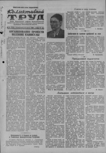 ПРОЛЕТАРИИ ВСЕХ СТРАН, СОЕДИНЯЙТЕСЬ! iCbUueJcmu&isiu лил *57л Орган Карасукского райкома Коммунистической партии Советского Союза и районного Совета депутатов грудящихся Новосибирской области Семена к севу готовы №33 ( 2528) I Воскресенье ,15 ляаота 1959 г. I Иена 15 кпп. ОРГАНИЗОВАННО ПРОВЕСТИ ВЕСЕННИЕ КАНИКУЛЫ Проходят последние дни самой большой, третьей учебной четверти. В школах сейчас напряженные дни. С 23 марта по 1 апреля будут проходить весенние каникулы. Наступает чудесная весенняя пора. Каникулы принесут школьникам много радости. Сейчас в Российской Федерации проходит конкурс на лучшее проведение работ по охране природы, 175 победителям которого будут вручены ценные премии. Нет сомнения, что все школы, все коллективы учащихся нашего района примут самое активное участие в этом конкурсе. Учащиеся начальной школы № 2 г.Карасука,Богословской семилетней и Чернокурьинской средней школ наметили в период каникул провести неделю охраны птиц. За это время они изготовят и вывесят сотни но- ных скворечников. В дни каникул будет прохо" дить районный смотр художественной самодеятельности учащихся. Смотр молодых талантов на местах уже состоялся, лучшие номера отобраны на районный. Здесь же будет организована выставка работ прикладного искусства школьников— вышивок, рисунков, выпиливания и др. Школы и отдельные учащиеся сейчас борются за то, чтобы на выставку представить свои самые лучшие работы, чтобы она явилась смотром достижений молодых умельцев. В связи с начавшейся перестройкой школы дети все больше приобщаются к общественно-полезному труду. Учащиеся школ района берутся в этом году вырастить для колхозов тысячи кроликов, куриц, водоплавающей птицы. Хоро- шинская и Калачинская школы уже приобрели по несколько крольчих. С большой заботой и любовью учащиеся сооружают клетки. Во время весенних каникул они продолжат эту работу. Помочь им в этом деле должны учителя и руководители школ. Не должны остаться в стороне родители и общественность. А весной учащиеся выйдут на поля, чтобы вместе с хлеборобами принять участие в возделывании зерновых, картофеля и особенно кукурузы. Подготовка к этому большому делу идет уже сйчас. В начале учебного года на районном слете юных героев труда лучшие представители пионерских и комсомольских организаций школ рапортовали о своих трудовых достижениях за прошлый год. Во время весенних каникул будет проведен областной слет юных героев труда, на который из нашего района выедет 9 делегатов. Пусть в этом году, первом году новой семилетки, в несколько раз умножится число юных героев труда! Немало заботы в эти дни и у учителей. Многие выедут на1сессии в высшие учебные заведения, и надо использовать это время так, чтобы каждый заочник в обязательном порядке выполнил учебный план. Многое предетЬнт сделать и по подготовке к 4 й, завершающей четверти учебного года. В целях оказания помощи учителям начальных классов в организации прохождения учебного материала в заключительный период учебного года в дни каникул будет проведен двухдневный семинар. Успешно он может пройти только тогда, когда к нему по-настоящему подготовятся все учителя. В четвертой четверти не только подводятся итоги того, чему научились школьники по овладению основ наук, но и ставится задача вовлечения учащихся в дни каникул в общественно-полезны