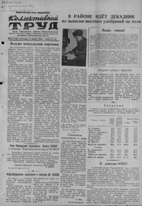 2 КОЛЛЕКТИВНЫЙ ТРУД 27 марта 1959 года, №38 Как мы организуем работу редколлегии Большие задачи поставил XXI съезд Коммунистической партии Советского Союза перед работниками сельского хозяйства по повышению урожайности и укреплению животноводства. Помочь работникам села успешно справиться с поставленными задачами призваны и мы, работники межрайонного отделения Глав- автотрактороснабсбыта. Важную роль в этом деле играет наша стенная газета. Хочется поделиться, как мы организуем работу редколлегии и осуществляем выпуск газеты. Газета наша называется «Деталь». Выходить она стала с октября 1957 года, с того времени, как была утверждена редакционная коллегия. Состав редколлегии у нас небольшой, всего три человека. Да и вся наша организация невелика— она объединяет 14 человек. Большую помощь мне, как редактору стенгазеты, оказывает Михаил Журавлев. А вот член редколлегии Владимир Пархоменко иногда пассивничает. Но все вопросы, связанные с выпуском газеты, мы решаем сообща: вместе планируем номер газеты, вместе выпускаем ее. В этом году мы выпустили уже четыре номера. Наша га зета по размерам невелика: она имеет всего четыре колонки, которые вставляются в аккуратно оформленную рамку. Первую колонку, а чаще всего только часть ее, мы отводим под передовую. Передовая в нашей газете обычно выражает основную задачу, которая стоит перед коллективом по снабжению организаций сельского хозяйства деталями. Остальную часть площади газеты используем под небольшие оперативные заметки, которые сопровождаем иллюстрациями или карикатурами, если они отрицательны. Наша парторганизация решила раз в неделю проводить обзор международных событии за неделю путем обобщения газетного материала и чтения отдельных статей. Эту работу поручили мне. Все сотрудники аккуратно посещают беседы, а вот рабочие Д. Маленко и Т. Зуева стали уклоняться от участия в этих беседах. И тогда наша газета на своих страницах указала на неуважение ими решений коллектива. Теперь тт. Маленко и Зуева регулярно посещают беседы. Заведующие складами С. Гречко и И. Болоховец—хорошие труженики Они следят за порядком в складах, за соблюдением правил хранения частей и деталей и снабжения ими хозяйственных организаций. А вот когда они допустили медлительность и неоперативность в раскредитовке вагонов с грузами, газета подвергла их резкой критике. Наша газета не умалчивает недостатки и смело указывает на них и рядовым, и ответственным р а б о т н и к а м . Осенью газета подняла вопрос о недостатках в подготовке к зиме, и управляющий т. Усенко воспринял это как своевременное и нужное напоминание и принял меры к тому, чтобы устранить имеющиеся недостатки. Но мы не превращаем газету в листок, только фиксирующий недостатки, мы подсказываем пути их устранения. Большое внимание уделяем показу лучшего опыта в работе, обобщению достижений передовиков и на этом учим остальных. Годовой план реализации деталей для автомобилей и тракторов в прошлом году мы выполнили со значительным превышением. А в этом году перед нами стоит еще более серьезная задача, и наша газета принимает все меры к тому, ,чтобы мобилизовать коллектив автотрактороенаб- сбыта. на успешное пыполне- ние плана первого года новой семилетки. Мы и в дальнейшем будем серьезно относиться к тому п о р у ч е н и ю , к о т о р о е возложила на 