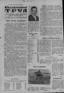 12 июня 1959 года, № 70 КОЛЛЕКТИВНЫЙ ТРУД 3 ☆ Мастер-швея завода строительных материалов Мария Ивановна Оберемок уже выполнила полугодовое задание, доведенное ей. Июньскую программу она обязуется завершить во дню открытия июньского Пленума ЦК КПСС—на шесть дней рань* uie срока. На снимке: мастер-швея завода строительных материалов М И. Оберемок. ★ Продают молоко государству Идя навстречу июньскому хозника. Среди них шофер л енУму ИД КПСС , жители колхоза коммунист Нуриман Михайловского сельского Фарфутдинов, сдавший за Совета организованно ведут 5 месяцев первого полуго- продажу молока государ- дия 400 литров молока. СТ®У' Столько же продали НургаАктивно участвуют в про- зин Низамутдинов и Халия даже молока государству от Зайнулина, своих личных коров 22 кол- Е, Рыспаев. 10 концертов в поле Агитбригада Карасукского художественной самодеятельн о ” 3 культуры за время ности ' 'п о д ,£■’руководством весеннего сева выступила Г. Бурматова -% приступили перед тружениками сельско- к подготовке большой кон го хозяйства района с де- цертной программы для об- сятью концертами. Возвра- служивания тружеников в тившись с полей, участники период сеноуборки. Месячный план перевыполнен Около десятка лет тр у дится за прилавком магазина Анастасия Архиповна Левенец. Сейчас она завед уе т продовольственным ма газином № 1. Впрошлом ме- вяце здесь продано для тру дящихся города разнообразных продуктов питания на 300 тысяч'рублей. За'десять дней июня трудящиеся горо. да купили продуктов на 74 тысячи рублей. Акитвне готовиться к приёмноувого уржоая Быстро пролетят два— три месяца, а там наступит пора уборки и перевозки хлеба новогоi , урожая. Чтобы, полностью сохранить и вовремя перевезти зерно, нужно всесторонне подготовиться, отремонтировать все транспорт- ное'хозяйство элеватора, чтобы работа с вагонами на подъездном пути проходила организованно. В прошлом году, несмотря на то, что были сданы в эксплуатацию две очереди нового мощного элеватора № 3, маршрутная отгрузка зерна была организована плохо. При имеющейся механизации элеватор должен грузить маршрутов вдвое больше, чем в 1954— 56 гг . Для лучшей организации маршрутов необходимо правильно определить специализацию складов, особенно связанных с элеваторами и.заранее спланировать организацию работ по погрузке. Многое нужно сделать и в организации своевременной подачи и уборки вагонов. К путям элеватора без согласия владельца примкнуты ^пути промывки и разгрузочный ту пик станции. Это создаст большие затруднения в организации манёвров, часто приводит к срыву погрузки. Инструкция по маневровой работе, утверждённая главным инженером элеватора, не выполняется работниками. Ещё в марте руководители группы заказчика обещали отсыпать и уложить ходовой путь для элеватора между двумя территориями. Обещали и забыли. Руководители элеватора тоже пе особенно беспокоятся об этом, так как из-за отсутствия ходового пути любой срыв погрузки осенью можно будет оправдать «несогласованной» работой по подаче и уборке вагонов. Ходовой путь необходимо строить обязательно и как можно быстрее. Руководителям элеватора следует подумать и о маневровых средствах. Единственный мотовоз больше простаивает в ремонте, чем работает. Часто приходится при подаче и откатке вагонов использовать трактор иди автомашину. Это нев