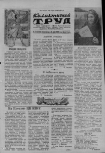 ц. Пролетарии всех стран» соединяйтесь1 ICbUudcrruM m u иргам Карасужсжого райкома Коммунистической партии Советсжого Сонма и районного Совета депутатов трудящихся Новосибирской области Ns 77(2572)! Воскресенье, 28 июня 1959 года [Цена 15коп, Агрегат молодых На полях шестой фермы ферме на 27 июня совхоза им. Дзержинского в 100 га. скошено ПРАЗДНИК МОЛОДОСТИ У каждого праздника есть свои отличительные черты, свои традиции. Складываются они и у праздника молодости. День молодежи— это большой праздник. В этот день советский народ чествует юность своей страны, смену старшим поколениям. Советская молодежь самая счастливая в мире. И в этот день свое счастье она продемонстрирует гимном песен, веселыми гуляниями, концертами художественной самодеятельности, спортивными состязаниями. День молодежи— это праздник молодости, силы, красоты. Нынче этот праздник приобретает особенный характер—в этот день молодежь подводит итоги своего труда в первом полугодии семилетки. Эти итоги соответствуют праздничному настроению— они величественны и потому радостны. Наша молодежь умеет ве только весело отдыхать, но и са- моспержепно трудиться. Радостное настроение сегодня у молодых строителей Братской ГЭС, обуздавших Ангару. Трудовыми победами встречают свой день посланцы комсомола на целине, на сотнях и тысячах строек, названных ударными комсомольскими. Вместе со всей советской молодежью разгаре сенокосная страда. С утра до вечера бороздит зеленые луга молодежный агрегат комсомольца Виктора Букеева. Анатолий Гуд ков следит за молодыми машинистами с е н о к о с и л о к Дмитрием Мироненко и Владимиром Обуховым, чтобы их машины работали четко, без перебоев. Молодые механизаторы, готовясь достойно встретить и провести свой молодежный праздник, трудятся с напряжением сил. За три дня они скосили 63 гектара естественных трав. А всего на этой За лето молодым рабочим предстоит убрать 868 гектаров естественных трав и 247 га могара. Славно потрудились они на севе пшеницы и к у курузы, на полях дружно идет в рост пшеница, красуются зеленые квадраты к у к у рузы. Молодые хлеборобы заняты сейчас не менее важным делом. Вчера на совхозные луга вышел еще один сенокосильный агрегат. Началось стогование сена и подвозка его к фермам. Сенокосная страда в разгаре. М. Сосунов. С любовью к делу Много труда приложили КУкурузсшоды питий оригады колхоза „Маяк Ильича", чтобы вырастить хороший урожай зеленой массы кукурузы. КуКУПУЗПВПЛЫ (М р с г » т с „ быстрее закончив первую междурядную обработку в двух направлениях. На днях эта работа будет закончена. Для ее посева были подобра- Хорошо справляется со сво- ны лучшие земли, участок ими обязанностями на куль- удобрен. Посеяна кукуруза тивации посевов кукурузы только квадратно-гнездовым способом. Сейчас на площади более 200 гектаров зазеленели правильные квадраты. Рас- торжественно и радостно отмечает свой праздник и молодежь нашего района. Мно- тения достигают в высо- го славных дел они совершают на колхоз- ту более 40 сантиметров, ных и совхозных полях, на промышленных предприятиях, на строительстве Средне-Сибирской железнодорожной магистрали, объявленной ударной комсомольской стройкой. С праздником вас, дорогие друзья! Пусть радость и веселье не покидают вас в этот день. т р а к т о р и с т на „ДТ-24“ В. Ильин. Он ежедневно обрабатывает до 20 гек