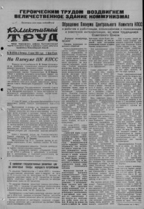 3 июля 1959 года, № 79 КОЛЛЕКТИВНЫЙ ТРУД 3 Обращение Пленума Центрального КомитетаКПСС к рабочим и работницам, н колхозникам и колхозницам, к советской интеллигенции, ко всем трудящимся Советского Союза заданий^. г>о'*^овышение ка- честрр^ снижение себесто- имл продукции. Должна иыть объявлена решительная борьба против расточительства, расхлябанности и I недисциплинированности, за бережливость, экономное, разумное ведение хозяйства. Заслуживают общественного порицания люди, которые, не давая обществу то, что должны дать, пользуются всеми благами наряду с тружениками, показывающими в работе образцы высокой сознательности и коммунистического трудолюбия. Новые задачи хорошо понимают разведчики будущего — участники славного движения бригад и ударников коммунистического труда. Эти бригады ревностно добиваются применения у себя на участке, на своем поле самой совершенной техники и технологии, они решительно выступают против косности, консерватизма, отсталости. Ударник коммунистического труда тот, кто, став мастером своего дела, не успокаивается на достигнутом, а пытливо смотрит вперёд, дерзает, ищет! Он дружит с передовой наукой и техникой, не терпит равнения „на старинку", всегда готов идти по неизведанным дорогам новаторов, чтобы сделать для народа больше нужных вещей, выше качеством, дешевле ценой. Зёрна коммунистического труда, взращённые нашей партией, дают всё более чудесные и обильные плоды. Нет сомнения, что в новом походе за технический прогресс, за всемерное совершенствование производства, вырастут и проявят себя миллионы и миллионы людей, показывающих образцы сознательного, коммунистического отношения к труду. Высокий долг, священная обязанность всех партийных, профсоюзных, комсомольских организаций—возглавить это растущее патриотическое движение масс. Товарищи, друзья! К новым главным подвигам в труде зовёт Коммунистическая партия, партия великого Ленина! Героическим трудом народа воздвигнем величественное здание коммунизма! Подвиги героев и героинь семилетки, самоотверженный труд людей нашего времени никогда не забудет наш народ, ими будут гордиться грядущие поколения, будут гордиться люди коммунистического общества, будет гордиться всё передовое человечество. Исторические решения XXI съезда партии освещают путь нашей страны и всего человечества к коммунизму. Вперед, и только вперёд, по этому пути! Еще теснее ряды вокруг испытанного вождя и организатора всех наших побед— Ленинской партии! Все силы, всю энергию—на выполнение великих задач развернутого коммунистического строительства! Центральный Номитет Коммунистической партии Советского Союза По 25 центнеров сена Организованно приступили к заготовке кормов колхозники и механизаторы четвертой бригады колхоза «Маяк Ильича». Перед началом сенокосной страды, бригадир комплексной бригады Александр Андреевич Бальцер много советовался с ^членами бригады, чтобы составить настоящий и глубоко продуманный план накопления кормов. Так расставить людей и технику, чтобы все работы, связанные с ; заготовкой "кормов, двигались одновременно. Благодаря ранее составленному плану каждый колхозник и механизатор знал свое место, и как только была дана команда приступить к сенокошению все организованно вышли на луга. Большую задачу поставил перед собой коллекти