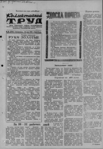 7 Пролетарии всех стран< соединяйтесьI С iCbUd£JcrnU&KGlU Оргаи Карасукского райкома Коммуяастаческо! яартни Советского Союза и районного Совета депутатов трудящихся Новосибирской области №89(2584) IВоскресенье, 26 июля1959 г.?Цена15коп. Творцы семилетки РУКИ ЗОЛОТЫЕ О таких тружениках, как Иван Петрович Гайша, говорят: люди скромных профессий. И профессия у Ивана Петровича скромная, и трудится он часто никем ие примеченный, но делает большое дело. Верно, что касается профессии, то у него она не одна. На днях на строительной площадке СМП-233 состоялся такой разговор: — Мы бы хотели познакомиться с маляром Иваном Петровичем Гайшей. Скажите, где его можно отыскать?— Обратились мы к инженеру т. Извекову. —Вон он, на крыше восьмиквартирного дома, —ответил тот. Мы поднялись на крышу и застали маляра с молотком и ножницами по железу в руках. Он отчаянно стучал по железному листу, который поддерживал загорелый вихрастый паренек в майке. Как так: маляр кроет крышу! Есть чему удивиться. — Скажите, что вас, маляра, заставило взяться за молоток и забраться на крышу ?-'ПО.любо- пытствовали мы. — Люблю на город посмотреть с высоты,—смеется Иван Петрович,—Особенно зимой —посмотришь на здания, над которыми из труб таистся легкий дымок, и думаешь: значит живы еще печи и жильцов обогревают... —Вы, что и печник ? — А разве это плохо?— вопросом на вопрос ответил Иван Петрович и широко улыбнулся,—Почитай, все печи в этих домах пришлось мне до жить,— и Иван Петрович махнул рукой в сторо ну целого квартала новых многоквартирных зданий. Родился Гайша на Украине, там и вырос. Там и о Кулунде впервые прослышал, когда мальчонкой потянулся в коммуну, которая переселилась туда из з д е ш н и х м е с т . Требовались строители, и Иван Г а й ша шел каменщиком, штукатуром. Испытывалась нехватка плотников, и он брал в руки топор. И даже считался неплохим столяром. Началась индустриализация, стали расти заводы, и Иван П е т рович возводит заводские трубы. А потом пошел на фронт. Там управлял бронепоездом. Побывал под Сталинградом, на К у р ской дуге, в Прибалтике. Много дел было у Ивана Петровича и после окончания войны—надо было быстрее восстановить разрушенное врагом. Когда Украина залечила раны, причиненные войной, а партия позвала на стройки Сибири, Иван Петрович приехал в Карасук. — Приехал и не каюсь,— говорит он.—Пугали нас раньше Сибирью, а я скажу: хороша земля сибирская! Здесь не только хлеб родит подстать украинскому, но и яблоки можно кохать. А посмотрите, какие цветы у меня возле дома! Любит трудиться Иван Петрович Гайша, и руки у него золотые. За 10 —12 рабочих За высокие показатели, достигнутые в социалистическом соревновании в первом полугодии, решением бюро PH КПСС и исполкома районного Совета депутатов трудящихся на районную Доску почета заносятся’. 7. Лозовая Клавдия Николаевна—аппаратчица вакуумаппарага молочноконсервного комбината. Нормы выполняет на 130 процентов. 8. Букеев Василий Иванович— кочегар молочноконсервного комбината, обеспе чивший бесперебойное обслуживание производства электроэнергией. 9. Гуляев Иван Савельевич—объездчик лесхоза, инвалид Отечественной войны! Бригада, возглавляемая им, выполнила производственное задание на 125 процентов. 10. Мамаев Дмитрий Инихаркович— слесарь заготзерно, обеспечивший хорошую работу механизмов элеватора. 11. Полиенко 