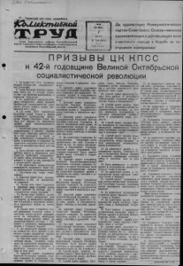 2 КОЛЛЕКТИВНЫЙ т р у д 7 октября 1959 года, № 120 П Р И З Ы В Ы Ц К К П С С к 42-й годовщине Великой Октябрьской социалистической революции 52. Слава бригадам коммуниста ?в' ского труда, передовикам и новаторам производства, идущим в первых рядах строителей коммунизма! 53. Работники промышленности, строительства и транспорта! Рационально используйте капиталовложения и материальные ресурсы, настойчиво боритесь за соблюдение государственной дисциплины, за выполнение и перевыполнение плановых заданий! 54. Рабочие и работницы, инженеры, техники и мастераШеемерно улучшайте организацию производства, обеспечивайте ритмичную работу предприятий и строек! 55. Трудящиеся Советского Союза! Из граммов складываются тонны, из копеек и рублей— миллионы и миллиарды! Экономьте в большом и малом, на каждом участке производства, повышайте качество продукции, снижайте ее себестоимость! 56. Тяжелая промышленность—основа дальнейшего подъема всего народного хозяйства, повышения благосостояния народа и укрепления оборонной мощи нашей Родины! Слава работникам тяжелой индустрии! 57. Советские металлурги! Совершенствуйте технику и технологию проивводства! Повышайте темпы освоения новых рудных месторождений! Больше руды, чугуна, стали, проката, цветных и редких металлов народному хозяйству! 58. Работники машиностроения! Быстрее осваивайте производство новейших высокопроизводительных машин и оборудования! Настойчиво боритесь за техническое перевооружение всех отраслей народного хозяйства, за широкое внедрение автоматизированных технологических процессов! 59. Работники нефтяной и газовой промышленности! Непрерывно повышайте темпы добычи и освоения новых месторождений нефти и газа! Наращивайте мощности нефтеперерабатывающих заводов, улучшайте качество нефтепродуктов! Дадим стране больше нефти и газа! 60. Работники угольной промышленности ГШире внедряйте комплексную механизацию и аффективные способы добычи угля! Повышайте производительность труда, снижайте себестоимость и улучшайте качество угля! 61. Советские энергетики, строители и монтажники электростанций и электросетей! Быстрее вводите в действие и осваивайте новые энергетические мощности! Дадим стране больше электроэнергии! 62. Работники химической промышленности! Быстрее вводите в строй новые мощности, расширяйте ассортимент химических продуктов! Дадим стране больше высококачественных и дешевых товаров из химического сырья, больше минеральных удобрений для сельского хозяйства! 63. Советские строители! Выше темпы строительства новых предприятий, жилых домов, больниц, школ и детских учреждений! Шире внедряйте индустриальные методы строительства! Стройте добротно, красиво, дешево! 64. Работники промышленности строительных материалов! Увеличивайте производство, улучшайте качество строительных материалов! Больше цемента, сборных конструкций и деталей для строек семилетки! 65. Работники лесной, деревообрабатывающей и бумажной промышленности! Дадим стране больше древесины, мебели, целлюлозы и бумаги высокого качества! 66. Работники легкой промышленности! Дадим трудящимся больше добротных и красивых тканей, хорошей одежды, прочной изящной обуви и других товаров широкого потребления! 67. Работники пищевой промышленности! Всемерно увеличивайте производство продовольственных товаров, повы