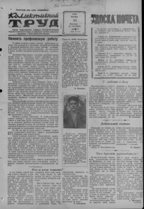 г Пролетарии всех стран, соединяйтесь! iG KU dcm u tem u ирган Карагукского райкома Коммунистической партия Советского Стаза в районного Совета депутаток трудящих' I Новосибирской области ■ж:;'!::»::';:!»::: 1059 Октябрь 2 5 Пятница № 127(2622) Цена 15 коп. Оживить профсоюзную работу В районе проходят отчеты и выборы профсоюзных органов. Они проводятся в обстановке высокой политической и творческой активности масс, когда рабочие, служащие, колхозники всю свою энергию направляют на претворение в жизнь великой программы коммунистического строительства. Коллектив Карасукского отделения временной эксплуатации решил с семилетним планом справиться на год раньше срока. На выполнение этого почетного обязательства профсоюзная организация и нацеливает свою работу. Здесь разработаны задания для всех участков, бригад и смен. Будь то специалист или разнорабочий—каждый из них знает, что должен сделать сегодня, а что завтра, чтобы идти в ногу со всем коллективом. Социалистическому соревнованию придают широкую гласность. При подведении итогов особое внимание обращается на популяризацию передового опыта и оказание помощи отстающим, В результате ОВЭ из месяца в месяц успешно справляется с производственным планом, имеет большую экономию в расходовании государственных средств. Профсоюзы с каждым годом повышают свою роль в культурном строительстве, в решении вопросов труда и быта рабочих, служащих. Это видно на примерах. Профсоюзная организация пищекомбината утвердила пять комиссий, каждой из которых поручен определенный участок работы. Одна из них, например, организует для рабочих доклады, беседы, читки газет, проводит другую культурно-воспитательную работу. Жилищно-бытовая комиссия заботится об улучшении жилищных условий рабочих, обеспечении их топливом и т. д. Немалую помощь рабочим в индивидуальном строительстве оказывает профорганизация совхоза им.'Дзержинского. Благодаря ей, нынче на фермах появилось около 60 новых домов. Однако, как отмечали члены профсоюза на отчетно- выборных собраниях профгрупп ферм, эта помощь может быть значительно усилена и особенно со стороны дирекции. Местком по-настоящему должен контролировать выполнение коллективного договора. Имеются и другие недостатки. В профорганизациях совхоза «Октябрь», завода стройматериалов, откормочном совхозе и некоторых других собрания проводятся очень редко; не уделяется внимания улучшению условий труда; отсутствует должный контроль за состоянием техники безопасности.Созданные постоянно-действующие производственные совещания не оправдывают своей роли. До сих пор еще не решен вопрос о создании профсоюзных организаций в колхозах в связи с реорганизацией МТС и переходом туда механизаторов. Отчеты и выборы повышают боеспособность профсоюзов, укрепляют их связи с массами, способствуют развитию критики и самокритики. Но это возможно только тогда,когда к собраниям тщательно готовятся, когда отчетный доклад конкретен, содержателен, и в его подготовке участвует широкий актив. На Карасукском же элеваторе подготовке к собраниям особого значения не придали. Поэтому прошли они в свешке, без особой активности. Ясно, что такие собрания не могли способствовать улучшению организаторской и воспитательной работы,более широкому вовлечению рабочих и служащих в производственную и обществ