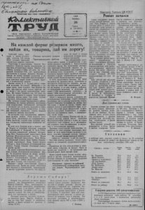 ( Р / с ^ л -л ^ / -ы Д г / Пролетария всех стран, соединяетесь! fC b U u g jc m u & H iiU иргам Карагукского райкома Коммунистической вартив Советского Союза и районного Совета деп'тато* трудяшит' I Новосибипской области 165» Октябрь 2 6 Среда № 129 (2624) Цена' 15 коп. ■ШИ На каждой ферме резервов много, найди их, товарищ, дай им дорогу! Советский народ, претворяя в жизнь исторические решения XXI съезда КПСС, успешно выполняет грандиозные задания семилетки. Подготовка к предстоящему Пленуму Центрального Комитета партии, плодотворные результаты исторического визита Никиты Сергеевича Хрущева в США, его речь на Генеральной Ассамблее ООН, его замечательные выступления в городах Дальнего Востока и Сибири, на приеме женщин—колхозниц и работниц совхозов Рязанской областивызвали у всех советских людей новый огромный трудовой и политический подъем. Высоко оценил Н. С. Хрущев работу советской молодежи. Он говорил: «Молодежь — это наша смена, наше будущее. Нам приятно видеть, как выросла наша страна, выросли люди, какая у нас растет замечательная молодежь. Мыможем гордиться тем, что дело, которому мы служили и служим, будет передано в крепкие, верные руки». Эти слова глубоко затронули, взволновали наши сердца. Мы, молодые доярки Черепановского района, собравшись на первую районную зоотехническую конференцию, обстоятельно поговорили о состоянии дел на фермах колхозов и совхозов, послушали советы специалистов и старших товарищей, обменялись опытом, вскрыли и подвергли критике недостатки. За последние годы чертановские животноводы сделали немало. Резко возросло поголовье скота, увеличилась его продуктивность. Район выполнил годовой план продажи мяса, дал государству значительное количество молока. Во всем этом большая доля и нашего тру-- да. Наряду со старшими опытными доярками К. Хлебниковой, Е. Нечаевой, Ф. Лутц, О.Рих- тер высоких показателей добились молодые: Эмма Шек (Черепановский зерносовхоз), Катя Гребенюк (Мильтюшихинский совхоз), Мария Данилюк (Майский свиносовхоз), Катя Шаба- ла (Евсинский совхоз), Нина Байбар (Черепановский зерносовхоз), Ирма Генина (колхоз «Победа»), Люда Володина (Посевнинский мол- совхоз), Тамара Севелюк (Гилевский совхоз) и многие другие. На пятом отделении Мильтюшихинского совхоза создана комсомольско-молодежная ферма. Ее коллектив борется за звание коллектива коммунистического труда. Все доярки учатся в зоотехническом кружке, добились хороших надоев. Сейчас ферма производит молока вдвое больше, чемв прошлом году. Зимовка— самый ответственный период в животноводстве. Нынче мы лучше обеспечили скот кормами и помещениями, механизировали многие трудоемкие процессы. Это очень хорошо. Но будет и немало трудностей, которые постараемся преодолеть. Нас воодушевляет постоянная забота партии и правительства о развитии сельского хозяйства, о благосостоянии советского народа. Нас вдохновляют достижения тружеников Рязанской области, -за девять месяцев выполнивших два годовых плана продажи мяса государству. С присущим молодости задором будем трудиться над претворением в жизнь величественных предначертаний родной Коммунистической партии. В честь предстоящего Пленума ЦК КПСС мывстаем на трудовую вахту, принимаем ответственное обязательство: надоить до конца года не менее 600 килограммов молока на корову, а за весь период стойловог