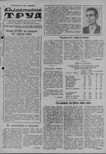 Пролетарии всех стран соединяйтесь! 4вк£ие1сгп4Штй |Орган Карасукекого райкома Коммунистической партии Советского Союза и районного Сонета депутатом трудящихся Новосибирской области ■№139 (2634)| Воскресенье, 22 ноября 1959 г.Шена 15кгп. Пленуму ЦККПСС мы посвящаем свои трудовые успехи Через месяц в Москве начнет работу Пленум Центрального Комитета КПСС . Он будет об- суждать вопросы дальнейшего развития сельского хозяйства нашей страны, и советские люди надеются, что в своих решениях партия вновь проявит отеческую заботу о социалистической деревне, укажет новые пути увеличения производства продуктов полеводства и животноводства, вскроет неиспользованные резервы. Вот почему трудящиеся с нетерпением ожидают это знаменательное событие, готовят ему достойную, встречу. Свои трудовые подарки к этой дате готовят работники сельского хозяйства и промышленности нашего района. Члены колхоза им. Тельмана и „Вперед к коммунизму” досрочно и с перевыполнением завершили годовые планы по продаже государству всех видов продуктов животноводства Механизаторы колхоза „40 лет Октября” обяза- лись к дню открытия Пленума отремонтировать 32 трактора и 16 комбайнов. Свое обязательство они подкрепляют делами. На линейку готовности здесь уже поставлено 15 тракторов. По-деловому обсудили призыв хорошинцев соревнующиеся с ними механизаторы колхоза „Путь Ленина” и также приняли на себя повышенные обязательства Достойно откликнулись на этот призыв ремонтники совхоза им. Дзержинского и колхоза „Вперед к комм \низму”. , , Хозяйскую заботу о подготовке семян для урожая будущего года проявляют члены колхозов им. Тельмана, „Новая семья” , „Вперед к комму низму” . Они уже заканчивают сортировку семян. Самый ответственный участок сейчас — животноводство. О нем надо проявлять хозяйскую заботу и уделять главное внимание, так как нынче проходит зимовка в трудных условиях: недостаточно запасено кормов, мало их подвезено к фермам, не везде хорошо подготовлены помещения для содержания скота. Вот почему заслуживает всяческой поддержки и широкого распространения инициатива комсомольцев и молодежи девятой бригады колхоза „Путь Ленина” , изъявивших жетание идти работать в животноводство. В объявленный декадник большинство колхозов и совхозов по-ударному подвозит к животноводческим фермам солому, принимает меры к Дополнительному изысканию кормов. Однако некоторые хозяйства с этой неотложной работой медлят, откладывают её на поздние сроки. Надо дело поставить так, чтобы к дню открытия Пленума на полях не осталось ни одного центнера кормов, чтобы они были переданы под ответственность фуражирам и выдавались по весу и строго по нормам. В эти дни каждый труженик города и деревни должен поставить перед собой вопрос: а какой трудовой подарок сделает он предстоящему Пленуму, взять достойное обязательство и с честью сдержать его. J.............................. ............... ..... .......... ,-п ...... ■........... . За первенство в области Комсомолец Василий Кримской пятый год трудятся комбайнером на полях второй бригады колхоза „Путь Лени- ня“ . О его трудовых делах пдет добрая слава не только в районе, но н далеко за его пределами. В минувшую уборочную страду Василий Карпович водил комбайн „РСМ-8” Он скосили подобрал около 930 гектаров хлебов. Дневную выработку довел до 45 гектаров. Его комсом