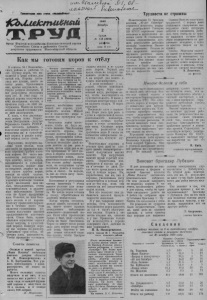 2 декабря 1959 года, № 143 КОЛЛЕКТИВНЫЙ ТРУД Упущенное наверстаем Больше инициативы и активности (С районной профсоюзной конференции) Наша артель „Путь Ленина" по подготовке техники к весне соревнуется с колхозом „40 лет Октября". Однако от своих соседей мы пока отстаем. На линейку готовности поставлено всего пять тракторов. Это случилось потому, что в начале ремонта допустили большую раскачку. А также и то, что от каждой бригады ремонтировали по одному трактору, а это отражалось на организации работ. Сейчас мы пересмотрели свои возможности и на днях загнали в мастерскую 14 тракторов в основном из двух бригад. Работа пошла совсем по-иному. Механизаторы первой и девятой бригад в полном составе вместе с помощниками бригадиров по механизации тт. Гидиономи Голенковым активно взялись за подготовку своих машин. Они решили все тракторы отремонтировать к дню открытия Пленума ЦК КПСС. У нас есть все возможности упущенное наверстать. Наши ремонтные рабочие прилагают все силы к тому, чтобы выполнить свои взятые обязательства. На 120— 140 процентов ежедневно выполняют задания токарь Ф. Дайнес и электросварщик А. Эртман. Около полутора норм составила среднедневная выработка за последнюю декаду ноября у кузнеца Ф. Фогель и его молотобойца Я. Лицемберга. Шесть тракторных моторов выдали из цеха монтажники Ф. Шнайдер и В. Крамской. Однако нужно сделать упрек и нашим снабженческим организациям Они недостаточно обеспечивают нас запасными частями и ремонтными материалами. Так, например, „Сельхоз- снаб“ не располагает н уж ным ассортиментом сортового железа, нет асбеста. Шплинты шатунных болтов кажутся мелочью, но и их нигде не найдешь. Это все отражается на ремонте. Ав- тотракторосбыт не имеет прокладок под головки— „ДТ-24*. Их можно было изготовить на месте, но беда в том, что металло-асбестового полотна также нигде не найдешь. М. Голубь, зав, мастерской. НАШ КАЛЕНДАРЬ (А 25-летию со дня С. М. Сергей Мироногвч К и ров (Коетриков) — выдающийся деятель Коммунистической партии и советского государства, верный ученик и соратник В. И. Ленина, пламенный борец за коммунизм, а к тивный участник трех русских революций. С. М. Киров родился в г . У ] жуме, Вятской губ. (ныне Кировская область) 15 марта 1886 года. В партию большевиков вступил в 1904 г . Неоднократно подвергался арестам и тюремному заключению. С 1908 г. вел борьбу но восстановлению разгромленных в годы реакции парторганизаций в Иркутске и Владикавказе. В 1917 г . — руково дитель большевиков во Владикавказе, организатор борьбы за социалистическую революцию на ' Северном Кавказе. Я в ляясь делегатом 2-го Всероссийского съезда Советов (1917 г .) , принимал непосредственное участие в Октябрьских боях в Петрограде. В 1919 г .— председатель Временного военнореволюционного комитета Астраханского края, руководил разгромом белогвардейского мятежа в Астрахани. Во главе 11-й армии участвовал в осуществлении плана разгрома Деникина. За самоотверясенную борьбу на фронтах гражданской войны награжден орденом Красного Знамени. трибун революции злодейского убийства Кирова) С 1921 г . С. М. Киров работает секретарем ЦК КП (б) Азербайджана, являясь сначала кандидатом в члены, а с 1923 г. членом Ц К РКП (б). С 1926 г . Киров руководит Ленинградской областной партийной организацией и Северо-Западным бюро Ц К ВКП(б), неустанно работает над социалистич