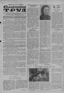* p ^1, W . fu J c i tu 1 Пролетарии всех стран, соединяйтесь) Ч Орган Карасукского райкома Г'оимунигтичеткой партии Советского Союза и районного Сокета депутатов трудящихся Новосибирской области №148(2643) 1 Воскресенье, 13 декабря 1959 г.IЦенз15 коп. Пребывание Н. С. Хрущева во Львове Находящийся на Украине Первый секретарь ПК КПСС, Председатель Совета Министров СССР Н. С Хрущев 9 декабря специальным поездом прибыл во Львов. Вместе с ним прибыли руководители Коммунистической партии и правительства Украины. После непродолжительного отдыха Н С. Хрущев и сопровождающие его лица осмотрели в здании обкома партии выставку новых изделий электротехнической и других отраслей промышленности города Львова. Затем они направились на Львовский автобусный завод. Здесь они посетили сборочный цех. Н. С. Хрущев беседовал здесь с рабочими, ознакомился с новыми моделями автобусов. На состоявшемся затем заводском митинге выступили слесарь кузовного цеха П. И. Павлив, мастер автокранового цеха инженер Я. М. Подвальный, директор завода Б. П. Кашкадамов. Они рассказали об успешной борьбе коллектива предприятия за выполнение семилетнего плана, заявили от имени рабочих о стремлении его досрочно, за 6 лет, завершить семилетку. Бурной овацией встретили собравшиеся речь Никиты Сергеевича Хрущева. Во второй половине дня Н. С. Хрущев с сопровождающими его лицами осмотрел строительство жилого массива в пос. Жовтневый. Это один из новых районов застройки Львова. Вечером Н. С. Хрущев вместе с руководителями Компартии и правительства Украины в Академическом театре оперы и балета имени Ив. Франко присутствовал на концерте мастеров искусств. 10 декабря товарищ Н. С. Хрущев вместе с руководителями Коммунистической партии и правительства Украины совершил поездку в колхоз имени Сталина Золочевского на львовтцине. На станции Золочев, куда прибыл специальный поезд, труженики предприятий и строек, колхозники близ лежащих сел горячо приветствовали дорогого гостя. Радушно встретили товарища Н. С. Хрущева, руководителей Коммунистической партии и правительства Украины труженики сельхозартели имени Сталина. Председатель колхоза Н. С. Старовина преподнес Никите Сергеевичу хлеб-соль, сердечно приветствовал его, пожелал крепкого здоровья и долгих лет жизни на благо родной отчизны. В правлении колхоза состоялась задушевная беседа Hv С. Хрущева с тружениками села. Товарищ Н. С. Хрущев дал много ценных советов колхозникам, подсказал как лучше вести хозяйство, подчеркнул необходимость распространения всего передового, прогрессивного, искать новые пути дальнейшего укрепления колхозного производства. На кукурузные участки Ранним утром далеко разносится скрип полозьев движущихся -саней по скованному крепким морозцем снегу. Это скотники Яков Пай- ман, Михаил Семищев и Владимир Кибенко вывозят навоз из животноводческих помещений на поля. Скотникам за это начисляется дополнительная оплата. Всего в первой бригаде колхоза им. Жданова вывезено на кукурузный участок и поля под зерновые сто тонн местных удобрений. Ведется и снегозадержание. Механизатор Андрей Миллер на „ДТ-54“ угольником укладывает снег в высокие валки. Он провел снегозадержание на 250 гектарах. Э. Камер лог. Иждивенцы Коллектив первой бригады колхоза «Новая семья» полностью обеспечил скот грубыми и сочными кормами. Непло