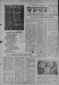M v <jUv w 'Ф .Гл , * . V У И у ^ в л ^ и а ^ ) U U /% U~tsCCOfJ>*4- улs$ *&-v Пролетарка к п crpaa, сседяяяФгвсь! ICbhUudcnuiMmm Орган Карасукского райкома Коммуниста веской партии Советского Союза и районного Совета депутатов трудящихся Новосибирской области I960 Январь 1 Пятница № 1 (2651) * = ♦ — Цепа 15 коп. Сельский рационализатор А. ФЕДОТОВ. НОВЫЙ ГОД ПРИШЕЛ! Новый год пришел сегодня В полночь радостную эту, Он от старого охотно Принял мира эстафету. Новый год! Ему остаться В верная хлеба первосортных, В красоте межзвездных станций, В этажах домов высотных. Друг за другом мчатся годы, Убегают словно реки. Но в деяниях народа Сохраниться им навеки. И, сердца соединяя, Нынче тост провозгласим мы За тебя, страна родная, Мира светоч негасимый. Мы тобой гордиться вправе В этот праздник новогодний. Мы, собравшись, снова славим Труд прекрасный, труд свободный. ...Ночь заглядывает в окна, Озаренные огпями. Счастье новое пришло к нам, Мир н будущее—с нами! Закончился первый; год семилетки, год самоотверженной борьбы советских людей за претворение в жизнь исторических решений XXI съезда партии. Частица труда в замечательные успехи нашей Родины вложена и Фёдором Тихоновичем Мирошниченко. Знают его в Карасукской РТС не только как хорошего механизатора, но и как опытного слесаря-монтажника. Из 22 лет работы в РТС Фёдор Тихонович шестнадцатый год встречает за слесарным станком и монтажным верстаком. И всё это время он трудится на одном и том же узле—ремонте коробок «передач к тракторам и автомашинам. Фёдор Тихонович так изучил свой узел, что не только умело производит разборку, ремонт и сборку коробок, но и вносит небольшие конструктивные усовершенствования своими рационализаторскими предложениями. За минувший год Фёдор Тихонович внёс около десяти различных рационализаторских предложений. Своё годовое производственное задание он перевыполнил: отремонтировал 28 коробок к трактораь|рРразлич- ных марок вместо 26 по норме и два сервомеханизма к „С-80“. Если в лА*ШХ мас- д шр Год знаменательных свершений Оторван последний лист календаря 1959 года. Солнце нового, 1960 года поднялось над нашей страной. Советские люди славят уходящий год, год великих побед,знаменательных свершений, год, который оставит о себе добрую память в народе. Незабываемые январские дни 1959 г, когда в Москве проходили заседания исторического XXI съезда КПСС, по праву; названного съездом строителей коммунизма. На нем была принята программа развернутого коммунистического строительства—план семилетки. И вот первый год семилетки завершен. Советские люди поработали на славу. Об этом убедительно говорят сообщения об итогах года. Наша семилетка—это семилетка вдохновенного творческого труда всего народа. Накануне XXI съезда КПСС родилось замечательное движение нашего времени—соревнование за право называться бригадами коммунистического труда. Сотни тысяч тружеников .последовали замечательному почину советской патриотки Валентины Гагановой. 1959 год—год триумфальных побед советской науки. Вокруг Земли стремительно носится третий советский спутник, умчалась к Солнцу первая в мире советская космическая ракета, на Луну доставлен советский вымпел, по сложной орбите, облетев Луну, движется советская- автоматическая межпланетная станция, морские воды бороздит первый в мире советский атомный ледокол „Ленин", своей красот
