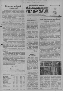 ) СС-t / Ч х VO 7 Ь V <\ЛЛМ. £ С Cf . i ‘ h V \ M . l-9 i ■iCksC~> На штурм рубежей семилетки! Новый прилив сил у трудящихся района вызвало решение декабрьского Пленума ЦК КПСС. В нем намечены конкретные пути движения вперед семимильными шагами. Трудящиеся нашего района, как к всей советской страны, горячо одобряют решение Пленума и берут повышенные обязательства, заявляя о своей ‘готовности досрочно выполнить семилетку по производству сельскохозяйственной продукции. Так, колхозники сельхозартели „Новая семья" решили в нынешнем году увеличить продажу государству мяса в три раза, шерсти—в два раза, молока и яиц—в полтора раза. Высокие обязательства приняли члены артелей „Маяк Ильича", им. Тельмана, „Вперед к коммунизму" и другие. Отрадно отметить, что в соревнование за изобилие продуктов сельского хозяйства включаются коллективы промышленных предприятий, торговли, школ. Например, рабочие молочноконсервного комбината и мясокомбината решили заняться откормом свиней, школы, расположенные на территории колхоза „Маяк Ильича", и другие будут разводить птицу. Обязательства принимаются большие и ответственные, но вполне реальные. Мы располагаем всеми данными, чтобы успешно осуществить их на деле. Примером могут служить достижения передовых хозяйств. Как отметил пленум РК КПСС, недостатки в развитии земледелия и животноводства в нашем районе в значительной мере объясняются тем, что некоторые партийные, советские, профсоюзные организации слабо ■ проводят организаторскую работу, не борются за быстрейшее внедрение в практику всего нового, передового, ограничиваются формальным одобрением мероприятий партии, мирятся с недостатками, не ока 1ывают существенного влияния на положение дел в колхозах и совхозах. Перед тружениками района стоят задачи—получить с каждого гектара не менее 11 центнеров зерна, продажу мяса государству увеличить в полтора раза, Iмолока—Haj22 процента, яиц—в полтора раза по сравн ению с 1959 годом. Задачи эти посильны. Главное сейчас состоит в том, чтобы, опираясь на опыт щредо-. виков, привести в действие большие резервы сельского хозяйства. До 10 февраля надо завершить работы по снегозадержанию и вывозке на поля навоза, до 1 марта закончить ремонт сельскохозяйственной техники. Только при этом условии- мы можем гарантировать повышение урожайности. Большую работу предстоит провести в животноводстве. В период зимовки надо добиться улучшения содержания скота, принять все меры к сохранению его и повышению продуктивности. Особое внимание должно быть уделено подбору и расстановке кадров, укреплению важнейших участков производства квалифицированными работниками, энергичными и умелыми организаторами, способными сплотить и повести за собой массы. Задача партийных, профсоюзных и комсомольских организаций состоит сейчас в том, чтобы направить творческую энергию трудящихся на осуществление социалистических обязательств по досрочному выполнению заданий семилетнего плана и созданию изобилия продуктов сельского хозяйства. С в е д е н и и о надоях молока за пятую пятидневку января, снегозадержании, очистке семян и вывозке навоза (в проц. к п лан у) на 25 января I960 года Надоено мо- Снего- Очистка Вывозка Колхозы и совхозы лока на ко- задержание семян навоза рову (в л.) ПРОЛЕТАРИИ ВСЕХ СТРАН, СОЕДИНЯЙТЕСЬ! 4CbUa£Jcmu#H6tu Орган Карасукского рай