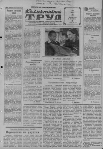 kH)€eJ& ~t) \ На ленинской вахте Подарок ветерана труда Ивану Павловичу Лебедеву 76 лет. Сидеть бы ему дома, рассказывая внукам о больших делах пройденного трудового пути. Но не таков Иван Павлович. Наравне с другими работниками он и сейчас продолжает трудиться жестянщиком в автогараже СМП-16. То ведра, то трубы или печные разделки, то кровлю крыш с отливами для новых домов и многое другое делает он. Иван Павлович не только жестянщик. Часто он подменяет кузнеца, слесарничает, оказывает большую помощь п ремонте автомашин и другой техники. —Мастер на все руки. И не просто мастер, а отличный ,—с гордостью заявляет о нем заведчощнй гаражом В. Цыбин .—За что бы ни взялся наш Павлович, всё сделает надёжно, прочно и аккуратно. Этому у пего учатся многие молодые рабочие. Старательно он экономит материал и время. Всегда перекрывает доводимые за дания. Сейчас Иван Павлович, иав и все работники поезда, готовится достойно встретить день рождения Владимира Ильича Ленина. За после инее время о н а>'ячп- тельно повысил производительность труда. в» i.iii it- ным подарком славному юбилею явится его изобретение. Неустанный труженик настойчиво работает над и з готовлением механических ножниц для резки металла толщиной в 20 миллиметров. Они дадут немалую экономию времени и материала. И потому, как успешно были закопчены испытания изготовленных нм первых ножниц по резке 12 миллиметрового ж елеза , можно с уверенностью сказать, что повое изобретение скоро увидит свет. К. Угрюмое. На помощь в колхозы Широко разгорелось социалистическое соревнование молодежи района в честь 90-летия со дня рождения В. И. Ленина Сейчас самым ответственным участком работы является животноводство, поэтому ему уделяется особое внимание. На зов комсомола идти в колхозы для оказания помощи в благополучном окончании зимовки скота откликнулись многие юноши и девушки. Более 50 молодых рабочих и служащих предприятий и учреждений города уже отправились в села. Уже сегодня трудятся они вместе е колхозной молодежью на подвозке кормов. Количество энтузиастов все увеличивается. Во главе групп трудятся вожаки молодежи Валя Ку- земчевко с модочнокоясерв кого комбината, Надежда Голованюк ив живза'щиты, Владимир Кращенво с завода стройматериалов, член, бюро райкома ВЛКСМ Анатолий Глуходед из совхоза им. Дзержинского п др. В. Костенко. / ПРОЛЕТАРИИ ВСЕХ СТРАН, СОЕДИНЯЙТЕСЬ! Л . / г LC^tJ в 1 S * С\ У?: _ Орган Карасукского райкома Коммунистической партии Советского Союза и районного Совета^ депутатов трудящихся Новосибирской области^ р I960 Март Воскресенье № 3 6 ( 2 6 ё 6 ) ♦ Цепа 4 5 кгп. Животноводы сельхозартели „Красный труженик“ Ивановского района Ивановской области в прошлом году получили по 807 центнеров молока на каждые сто гектаров сельхозугодий. В колхозе работает дояркой коммунистка Зоя Сергеевна Еотомкчно—лучшая доярка области. В первом году семилетки она добилась значительного успеха . надоив от каждой коровы по 5977 килограмм! в молока. В ответ на решения декабрьского Пленума ЦК КПСС 3 . С. Котомкина взяла новое, повышенное обязательство—в 1960 году надоить не менее 6600 килограммов молока от каждой коровы. На евимке: доярка 3. С. Котомкина со своими детьми, сыном Колей и дочкой Валей. одной мыслью Соревнуются дояры Для тружеников сельского хозяйства уже не ново, что женщин-доярок заменяют мужчины и справ