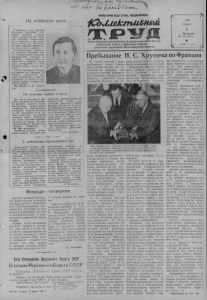 2 КОЛЛЕМВВВЫЙ 1Р*Д 1 апреля 1960 года, Л» 41 Пребывание Н.С. Хрущева во Франции С пленума райкома партии Общественность в силах сделать все (Окончание. Начало на 1-й стр.) Муниципальный совет Дижона устроил прием в честь главы Советского правительства Н. С. Хрущева.От име- нигмэра города Н.С.Хрущева приветствовал заместитель мэра Вейе.Мэр города Дижона каноник Кир,всегда'выступавший за сближение между Францией и Советским Союзом и неоднократно перед этим заявлявший о своем желании встретиться с Н. С. Хрущевым, оказался лишенным возможности лично приветствовать главу Советского правительства. Этому помешала клерикальная верхушка, которая потребовала, чтобы Кир отказался от встречи с Н.С.Хрущевым на том основании, что последний является коммунистом. Только мир, сказал в начале своей речи Вейе, даст нам возможность и дальше идти по пути развития нашей страны. Этого мира мы хотим также горячо, как и все другие люди. Отметив, что французский народ всегда испытывал большую и глубокую симпатию к Советскому Союзу, Вейе выразил уверенность, что между^ Францией и СССР будет найдена почва для взаимопонимания, доброй воли и доверия для построения прочного мира. От имени Кира заместитель мэра Вейе преподнес Н. С. Хрущеву как символ союза бургундский кубок. Одновременно он передал текст послания Кира, в котором, в частности, говорится: „Я рад и очень горд тем, что могу сказать вам „Добро пожаловать" в эту древнюю столицу исторического района, которая всегда радушно принимала знаменитых гостей". В своем послании Кир подчёркивает, что он питает особые симпатии к русским людям, дружба с которыми у него имеет давние корни и „которая никогда не была нарушена". Отметив, что „ценное сотрудничество" Советского Союза в большой мере способствовало восстановлению национальной независимости Франции, Кир подчеркнул: „Я могу даже совершенно искренне сказать, что если бы русская армия не заставила врага окончательно отступить, то мы, французы, все еще были бы под иностранным господством". „Сегодня я хочу приветствовать в вашем лице,— говорится далее в послании Кира,—одного из наиболее активных противников „холодной войны", которая дорого стоит всему миру... Независимо от того, какие существуют экономические, административные и социальные методы у разных народов, мы воодушевлены одним и тем же желанием- желанием дать всему человечеству эпоху мира и свободы". Н. С. Хрущев произносит речь, неоднократно прерывавшуюся аплодисментами. Мы знаем Дижон, заявил он, как родину целой плеяды известных всему миру деятелей науки, культуры и искусства. Дижон известен также как город горячих французских патриотов. На протяжении своей многовековой истории дижонцам не раз приходил, оь защищать свой город от нашествий чужеземцев. В годы второй мировой войны, когда народы наших стран вели совместную борьбу против общего врага,Дижон был одним из крупнейших центров сопротивления немецко-фашистским захватчикам. Здесь, в окрестностях Дижона,советские военнопленные, объединенные в партизанские отряды, сражались плечом к плечу с французскими патриотами против гитлеровских захватчиков. Дружба наших народов, продолжал" Н. С. Хрущев, скреплена боевым сотрудничеством, взаимными симпатиями наших народов, близостью наших культур, проникнутых гуманизмом. Мы должны беречь и развива