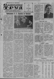 ПРОЛЕТАРИИ ВСЕХ СТРАН, СОЕДИНЯЙТЕСЬ! tf& K iuefcm u& m u Орган Карасукского райкома Коммунистической партии i Советского Союза и районного Совета депутатов трудящихсяНовосибирской области I960 Апрель 5 Воскресенье № 42 (2692) ♦ Цена 15 коп. У Пребывание Н. С, Хрущёва во Франции ‘ 29 марта в 13.15 по мест* ному времени Н. С. Хрущев прибыл в город Реймс, в столицу Французской провинции Шампань. Тысячи жителей города встречали высокого советского *гостя. Приветствуя главу Советского правительства, заместитель мэра Реймса Тэтингер выразил надежду, что, встречаясь с народом Шампани, Н. С. Хрущев убедится в том, какое огромное значение французы придают его визиту и его переговорам с генералом де Голлем. Затем в городской ратуше был дан завтрак, на котором Н. С. Хрущев выступил с речью. Позднее глава Советского правительства и его спутники отправились осматривать Реймский собор Нотр-Дам. Гости с большим интересом ознакомились с этим шедевром французской готики, который сильно пострадал от варварской бомбардировки германской артиллерией и авиацией во время первой и второй мировых войн. При выходе из собора Н.С. Хрущева радушно приветствовали толпы горожан. Затем Н. С. Хрущев и сопровождающие его лица выехали на автомашинах в центр производства французских шампанских вин—город Эпернэ, где их радушно приветствовали несколько тысяч человек. Н. С. Хрущев и сопровождающие его лица были гостями членов правления объединения производителен шампанских вин. После этого Н. С. Хрущев посетил винные погреба известного винодельческого завода „Моэт э Шан- дон“, который существует уже 217 лет. Погреба этого предприятия имеют общую протяженность 20 километров, в них хранится 18 миллионов бутылок вина. После посещения Эпернэ Н. С. Хрущев и сопровождающие его лица возвратились в Реймс. В муниципалитете города Реймса состоялся прием. Во второй половине дня Н. С. Хрущев и сопровождающие его лица выехали специальным поездом в крупнейший промышленный центр севера Франции город Лилль. 29 марта Н. С. Хрущев и сопровождающие его лица прибыли в Лилль. На вокзале их приветствовали префект департамента Нор, представители городских властей. В момент, когда Н. С. Хрущев выходил из здания вокзала, огромная толпа, собравшаяся на площади и прилегающих улицах, устроила ему бурную овацию. Кортеж направился в преПредседатель Совета Министров СССР Н. С. Хрущев в Париже. На снимке: Н. С. Хрущев отвечает на приветствия с балкона здания на Кэ д‘Орсэ, являющегося его резиденцией в столице Франции. фектуру Лилля. Дождь и ненастная погода не помешали многочисленным делегациям из рабочих поселков, окружающих Лилль, прибыть, чтобы выразить чувства горячей симпатии к посланцам советского народа. У здания префектуры главу Советского правительства радушно приветствовали префект департамента Нор и его супруга. Н. С. Хрущев проходит между двух рядов шахтеров в белых касках и с шахтерскими лампочками. Это почётный караул в честь высокого гостя—бывшего шахтера и главы правительства великой дружественной страны. Никита Сергеевич сердечно здоровается с ними, пожимает им руки. Завязывается беседа. Перед окнами резиденции главы Советского правительства в здании префектуры, куда Н. С. Хрущев удалился для краткого отдыха, собирается огромная толпа. Охваченная энтузиазмом толпа скандирует:„Никита Хрущев