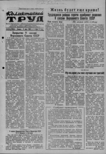 / / г Cx^xJ с Прфлетарий всех стран, соединяйтесь! ^СЬиимкхмШшй У СЖ изнь будет еще краш е! Трудящиеся района гороячодобряют решения V сессии Вехорвного Совета СССР Орган Карасукского райкома Коммунистической партии Советского Союза и райоввого Совета депутатов трудящихся Новосибирской области №58 (2708)1 Срвда^ 1 мая 1960 г. 1 Цена15 кол^ Закрытие V сессии Верховного Совета СССР В 10 часов утра 7-го мая открылось совместное заседание палат. Продолжается обсуждение докладов о мероприятиях по завершению перевода в I960 году всех рабочих и служащих на сокращенный рабочий день. Депутаты в своих выступлениях единодушно одобряют представленный законопроект о переводе всех рабочих и служащих до конца года на семи-и шестичасовой рабочий день. Обсуждение закончено: принимается предложение о прекращении прений. Сессия переходит к рассмотрению третьего вопроса повестки дня—об утверждении Указов Президиума Верховного Совета СССР. С докладом по этому пункту порядка дня выступает секретарь Президиума Верховного Совета СССР депутат М. П. ГЕОРГАДЗЕ. После небольшого перерыва председательствующий предоставляет заключительное слово главе Советского правительства и Первому секретарю Центрального Комитета КПСС товарищу Н. С. Хрущеву, встреченному бурными аплодисментами всех присутствующих. Эту речь, транслировавшуюся по радио и телевидению, слушала вся страна. Вначале тов. Хрущев отмечает, что все выступавшие на сессии единодушно поддержали предложения Советского правительства об отмене налогов с рабочих и служащих и других мероприятиях, направленных на повышение благосостояния советского народа, и о завершении в нынешнем году перевода всех рабочих и служащих на сокращенный рабочий день; что депутаты единодушно одобряли внутреннюю и внешнюю политику Советского правительства. Затем глава Советского правительства говорит о необходимости дальнейшего укрепления индустриальной базы промышленного, жилищного и культурно-бытового строительства. И вот товарищ Хрущев переходит к обличению замыслов агрессивных сил милитаристов. Неотразимыми фактами он пригвоздил их перед всем миром к позорному столбу. ... После доклада товарища Хрущева Верховному Совету СССР об агрессивном акте американской авиации против Советского Союза, госдепартамент США в официальном заявлении для печати стал утверждать, что речь, якобы, идет о нарушении советской границы американским самолетом, который-де проводил исследование верхних слоев атмосферы в районе турецкосоветской границы. Госдепартамент уверяет, что самолет, якобы, сбился с курса из-за неисправности кислородного питания летчика, который потерял сознание, и самолет, управляемый автопилотом, залетел на территорию СССР. Госдепартамент уверяет, что этот самолет принадлежит национальному управлению по аэронавтике и исследованию космического пространства, что подтвердило и само это управление. И вот вор схвачен за руку. Жалкая ложь госдепартамента США обличена перед всем миром. В госдепартаменте полагали, что летчик погиб, так что не у кого будет спросить, как обстояло дело в действительности. Но товарищ Хрущев сообщает: летчик жив и находится в Москве; американский самолет сбит не у советско- турецкой границы,а он пролетел над нашей территорией свыше двух тысяч километров, пробыв в воздухе в общей сложн