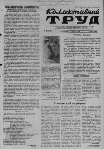 t^€- /O ', / СОЦИАЛИСТИЧЕСКИЕ ОБЯЗАТЕЛЬСТВА участников районного совещания механизаторов сельского хозяйства Товарищи механизаторы, колхозники и колхозницы, рабочие и служащие совхозов, специалисты сельского хозяйства, горожане, прибывшие на хлебоуборку! Приближается самая горячая пора сельскохозяйственных работ—уборка урожая. На колхозных и совхозных полях нашего района выросли хорошие хлеба. Теперь наша задача—своевременно и без потерь убрать нами же выращенный урожай. ■В ответ на заботу Коммунистической партии нашего правительства о создании всех возможностей для быстрого развития сельского хозяйства мы, механизаторы Кара- сукского района, сделаем все возможное, чтобывыполнить эту сложную и почётную задачу—без потерь уберем кулундинский хлеб. Обсудив у себя в колхозах, совхозах и на районном совещании механизаторов условия уборки урожая во втором году семилетки, мы берем на себя следующие обязательства : 1. Будем работать по-коммунистически, не пожалеем своих сил для того, чтобы уборку провести без потерь за 18 рабочих дней, и этим самым внесем достойный вклад в выполнение социалистических обязательств района. 2. В целях разумного использования тракторного парка в период уборки на косовице хлебов будем внедрять спаренные и строенные агрегаты. Организуем работу 72-х спаренных и 28 строенных агрегатов жаток, 45 агрегатов спаренных комбайнов, что позволит высвободить 173 трактора, которые будут использованы на уборке соломы, вспашке зяби, на заготовке кормов и закладке силоса. 3. На основе широко развернутого социалистического соревнования между агрегатами высокопроизводительно и без простоев используем технику. Добъемся нс менее 20—2,5 га выработки в сутки на каждый режущий аппарат. 4. Мы призываем комбайнеров района, чтобыкаждый из них на своем прицепном комбайне срезал в валки не менее 150 га, а затем быстро включился в подборку валков. Этим самым мы значительно сократим сроки уборки урожая. 5. В целях лучшего использования транспорта на отвозке зерна и улучшения организации труда обязуемся повсеместно применять групповой метод работы уборочных машин, а также механизировать разгрузку автомобилей на токах. | 6. Каждый комбайновый агрегат при подборке ' валков обязывается обмолоченную солому укладывать в ровные ряды с таким расчётом, чтобы лучше можно было использовать средства механизации на уборке и скирдовке соломы. 7. В лучшие сроки организуем уборку семенных участков, немедленно просушим и отсортируем зерно. В этом году сделаем засыпку семян с начала уборки урожая и только в отсортированном виде. Одновременно с продажей хлеба государству обеспечим засыпку в семенные фонды высококачественных семян на полную потребность для каждого хозяйства. 8. В целях создания прочнойбазы под урожай 1961 года обязуемся к 10 октября закончить взмёт зяби под весь яровой сев. Мы призываем всех механизаторов, колхозников и ра. ботников совхозов включиться в социалистическое сорев нование за высокую производительность труда, за уплотнение рабочего времени, за качественное проведение уборочных работ, за увеличение сбора зерна и досрочное выполнение государственного плана продажи хлеба государству. Это будет наш вклад во всенародное дело борьбы за досрочное выполнение второго года семилетки. Приготовься в поход, хлебороб! Посмо