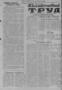 НОВОМУ УРОЖАЮ— „ЗЕЛЕНУЮ УЛИЦУ“ Пролетарии всех странt соединяйтесьI Наступает пора массовых хлебоперевозок. На Карасукский элеватор пойдет мощный поток автомашин о кулундинским зерном. По сравнению с прошлым годом пропускная мощность элеватора резко увеличивается. Это достигнуто в основном за счет реконструкции ряда крупных зерноочистительных агрегатов, подготовки складов с активной вентиляцией, установки новых автомобилеподъемников и т. д. Так, элеватор № 1 в связи с заменой 45-тон- ных норий стотонными увеличит производительность более чем в два раза. Построено новое кирпичное здание приемного склада, где ведется монтаж двух автомобилеподъемников, установлен сепаратор „КДП-100“. Па монтаже нового оборудования хорошо работает бригада Владимира Петровича Августа. Монтажники Валентин Котов и Евгений Гуляев, выполняя порученное им дело, проявляют инициативу.и расторопность. Реконструирован сушильный агрегат „СОБ-ПО“. Его суточная производительность возрастет по сравнению с 1959 годом на 140 тонн. Готова к переработке зерна сушилка „ВИСХ0М-4А На подготовке этих механизмов проявили старательность слесари гг. Колетов, Снегур, сменный мастер т. Рожкова, рабочая т. Ковнер, начальник сушилки т. Бакланов. Вступают в строй пять складов с активной вентиляцией. Три из них готовы к эксплуатации. С помощью вентиляторов высокого давления типа „Проходка" в этих помещениях можно будет просушивать зерно с влажностью до 20 процентов. Однако коллектив элеватора мог добиться большего. К призму массового поступления зерна здесь еще далеко не все готово. Медленно ведутся работы по реконструкции элеватора № 1 и некоторых сушильных агрегатов. 11а территории старого элеватора значительная часть автоподъездных дорог непригодна к использованию. Большие выбоины сейчас забиваются песком. Но это полумеры. В период массовых хлебоперевозок по территории пункта только за сутки будут проходить сотни автомашин.Для этого необходимо заранее создать более надежные подъезды. Слабо ведутся работы по удалению вод с нижних галерей. Возле склада № 3 уже более 20 дней заполнена щебенкой большая площадь с целью создания подъездных путей. Эту площадку строит и должен заасфальтировать СМУ „Запсибхлебостроя" (начальник т. Лаврентьев)'. Сначала т. Лаврентьев ссылался на дожди, которые мешали производить асфальтировку, сейчас установилась сухая погода, но положение дел не меняется. Ага же организация с отступлением от проекта произвела сооружение канальной вентиляции в двух складах. Технический руководитель от элеватора т. Исаков должен вести контроль на строительных объектах. Он все это видел, но промолчал. В результате ведутся большие работы по перестройке. На территории нового элеватора СМУ „Запсиб- хлебостроя“ сооружается мощная зерносушилка производительностью 32 тонны в час. По заданию строители должны сдать этот важный объект к 1 сентября. Однако строительство ведется такими темпами, что зерносушилка вряд ли будет готова даже к 1 октября. Третий год сооружается водонапорная башня. Тов. Лаврентьев несколько раз называл сроки сдачи ее в эксплуатацию, но ни разу слова не сдержал. На элеватор уже начал поступать овес, ячмень и рыжик. Скоро пойдет основная продовольственная культура—пшеница. Долг работников элеватора встретить этот день во-всеоружии. 