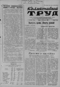 Iwvwwwvyvw A / v v v v w v w i / v ^ » ^ j Постоянно совершенствовзть формы и методы обучения Важнейшим элементом перестройки работы школы является изменение форм и методов обучения. Сложившиеся за последние годы типы уроков имеют много недостатков, которые являются основной причиной низкой успеваемости. Многие педагогические коллективы в прошлом году основательно взялись за совершенствование урока. 7олчком к этому послужила напечатанная в журнале „Народное образование“ статья т. Москаленко „Как строить урок по- новому". После изучения ее последовали первые практические шаги. Много сделано коллективом Карасукской начальной школы № 2 (заведующая М. П. Кайгородова, завуч А. Д . Донов- ская). Сначала робко, начиная с первого, второго классов,, а к концу года, перейдя к четвертым классам, вели работу без домашних заданий и добились положительных результатов. Глубокие и прочные знания дают учителя начальных классов Р.П. СпесивцеваД. Г. Никитенко, А ,Н. Овчинникова и многие другие новаторы на поприще народного образования. Работая по новым программам, учителя начальных классов Хорошинской средней школы стремились связать материал каждого урока с жизнью. Дети составляли задачи по данным колхоза „40 лет Октября"; предварительно проводились экскурсии на животноводческую ферму. Второклассники сами определяли число коров, подсчитывали общий надой, сравнивали результаты работы передовой доярки Анны Ишмухомет (бывшей ученицы этой школы) с результатами труда ее подруг. В 5—10 классах семилетних и средних школ также заметны сдвиги в организации обучения. В Благодатской средней школе под руководством и при участии преподавателя 'физики А. А. Костикова ребята изготовили очень много ценных приборов. Учитель физики Карасукской средней школы В. И. Крупский добился такого положения, когда учащиеся прочно усваивали материал на уроках и здесь мх> получали оценки знаний. Много нового и полезного в работе выявилось у литераторов 3. П. Дерегнаной, К.П.ЗСареной, математиков С. П. Медведко, Р. К. Новиковой, Е. В. Дель и других. Успеваемость зависит от учителя, который является хозяином, положения в классе. 1 второгодничество свидетельствует о том, ч\то некоторые учителя не могут ^,.,,,пяп’тмя нестарых, застоявшихся форм обучения. Что же необходимо сделать в новом учебном году? Первое—это заново освежить знани в области педагогики, ознакомиться с трус ми по дидактике, углубиться в изучение детекч психологии. В центре внимания руководителей школ, педагогических коллективов и методгеских объединений должны быть дидактическшпринципы обучения. Д у х требовательности друг к другу, ответственность друг за друга Ьлжны жить в каждом коллективе. Сведения о ходе уборки зерновых и вспашке на 30 августа 1960 года 3 и о-: Колхозы и совхозы Им. Тельмана «■Маяк Ильича» «ВпереХ к коммун.» «40 лот Октября» Им. Куйбышева «Новая семья» Им. Жданощ^"-'" Итого '**** ^олхозям «Октябрь» р Студеновекр 1«ЯАОтаа р 1,0 Району fcf ‘ О сп О- С Ск « гSа. ^а (О Я * а 23,6 30.4 46.0 2 7> ' ттТ.6 19.5 16,8 25.0 СО 3а- £а V В а 360 2365 1045 4322 877 500 434 9903 о А О v s d 3 ^ 3 8 2 1 у ' 32,в 10111 :,0/2 20014 240 658 178 89? у 75 "200 2440 905 800 W42 2747 5187 83 693 48 289 26 250 1389 315 120 167 602 1991 Подобрано Поднято и обмолоче-: но зерновых зяби (га) (га) Пролетарии всех стран, соединяйтесьf fCbUudcmu£HsUi СРГЯН КЯГАСУКСКОГО РЯЙКОМЯ КОММУНИСТИЧЕСКОЙ ПЯРТИИ СОВЕТСКОГО СОЮЗЯ И РАЙОННОГО СОВЕТЯ ДЕПУТАТОВ ТРУДЯЩИХСЯ НО