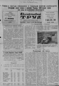 КОЛЛЕКТИВНЫЙ труд 3 2§ сентября 1960 года, № 118 Труженики сельского хозяйства Северо-Казахстанской области, пересмотрев ранее взятое обязательство, решили засыпать в закрома Родины в этом году не менее 70 миллионов пудов целинного хлеба—значительно больше, чем установлено планом. Образцово ведут раздельную уборку зерновых колхозники сельхозартели „Мир" Полудинского района. На косовице работает 10 агрегатов и столько же комбайнов ведут подборку валков. Зерно непрерывным потоком поступает с полей на тока. НА СНИМКЕ: на току первой бригады колхоза „Мир". Фото В. Шейнина. Фотохроника ТАСС. Н а то н у р а б о та с п о р и т с я В окружении хлебных массивов, километрах в пяти от цейтра колхоза «Вперед к коммунизму», располагается ток второй бригады. Здесь добротный типовой зерносклад, полевой стан. Днем и ночью работают на току зерноочистительные машины. И тому, что колхоз одним из первых выполнил план сдачи хлеба государству много способствовала быстрая подработка и отправка зерна на элеватор. Работа по очистке зерна ведется в две смены. Для освещения и обеспечения зерно очистительных машин электроэнергией установлен двигатель «Андижанец» с динамо. За работой их следят механизаторы Иван Богатырев и Геннадий Новак. Свой посильный вклад в успех уборки урожая вносят женщины-до мохозяйки, обеспечивая работу сортировок. Говоря о работе на току, мы с удовольствием отмечаем труд посланцев города. Они работают в полную силу. На очистке зерна В. Печенкина, В. Гурьянова, J1. Богомаз и Г. Бннадыеенко не уступают в работе мужчинам. За сутки две смены подрабатывают до 500 центнеров зерна. *Вез задержки идет разгрузка и погрузка хлеба. В. Ягодин, В. Гоголева, А. Силяев по 700—800 центнеров зерна разгружали в отдельные дни. Много хлопот и у заведующего током. Не приходится считаться со -сном р отдыхом, так как зерно круглые сутки бесконечным потоком проходит через ток. Его нужно принять, взвесить и отправить. В напряженные дни хлебосдачи мы отправляли на заготовительные пункты до 1000 центнеров хлеба в сутки. Столько же принимали на ток. Ведь наша бригада сдала государству столько хлеба, сколько первая и третья вместе взятые. При плане 7100 центнеров мы сдали около 10000 ц. Сдачу хлеба продолжаем. И. Андриевский, зав. током. Воспитывать у детей любовь к труду У колхозников сельхозартели им. Жданова, как и у других сельских тружеников, сейчас много забот. Чтобы успешно справиться со всеми делами, рабочих рук недостает. Коллектив учителей и учащихся Кучугурской семилетней школы решил оказать посильную помощь колхозникам. Хорошо понимая поставленную задачу, дружно выходят в эти дни и усиленно трудятся на копке колхозного картофеля учащиеся 5,6 и 7 классов. Многие мальчики и девочки выполняют нормы взрослых и даже больше. В этом хорошо помогают школе родители, которые, снаряжая детей на работу, наказывают им трудиться добросовестно, лучше помогать колхозу. Однако не все так рассуждают. Родители ученицы Нины Морозовой, например, живут по старой, недоброй пословице «Своя рубашка ближе к телу». Они не разрешают Нине помогать колхозу, пока не выкопан свой картофель. А бабушка Веры Коваленко оберегает внучку не только от труда в колхозе, но и от всяких домашних дел, слепо развивая тем самым в ней леность и боязнь к труду. Это неправильные взгляды, и родителям, рассуждающим подо
