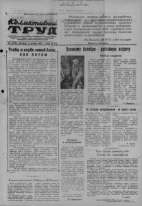 y - y j •7 Пролетарии всех странt соединяйтесь) I^UueJcmuBmtA Орган Карасукского райкома Коммунистической партии Советского Союза и районного Совета депутатов трудящихся Новосибирской области 128 (2778)1 Пятница, 21оитября I960 г.1Цена 15 ноп. *Чтобывклубе зимойбыло,* как летом Сельский клуб—центр культурно-массовой работы на селе. Зимним вечером, после трудового дня молодежь должна найти здесь полное удовлетворение. Да и только ли молодежь? Пожилой колхозник или рабочий тоже непрочь пойти в кино, на концерт или посидеть в теплой, уютной библиотеке за газетой или журналом. Очень важно, чтобы в этих очагах культуры каждый почувствовал себя не хуже, чем дома. Спасибо скажет население культпросветработникам, которые вместе с руководителями на местах заранее позаботились сделать всё, чтобы в библиотеке и клубе зимой было, как летом. Почему, например, Аетрадымский, Троицкий клубы и библиотека заблаговременно отремонтированы, и зима,будь хоть того она холоднее,не страшна молодежи? Потому что председатель сельского Совета т. Макеева и управляющий пятой фермой совхоза им. Дзержинского т. Евсюков в горячие дни уборки не забыли о подготовке культурно-просветительных учреждений к зиме. Не сидели без дела и заведующие клубов, библиотеки и киномеханики, которые сами занима- лисьремонтом печей, заготовкой топлива, отремонтировали и дополнительно приобрели мебель в нужном количестве. Многое сделано по подготовке Поповского, -Хорошин- ского, Токаревского, Ново-Андреевского, Тархановского клубов, Чернокурьинской библиотеки и Карасукского Дома культуры. В основном своими силами здесь отремонтированы печи, полы, оштукатурены степы. В Доме культуры введено в строй водяное отопление, полностью завезено топливо. Однако до сих пор не готовы Карасартовский, Калиновский, Кучугурский, Михайловский и Благодарений сельские клубы и клубы Октябрьского сельсовета, хотя зима уже на пороге. Заведующие этих очагов культуры ожидают, когда руководители сельсоветов и колхозов придут к ним и предложат утеплить помещения, а то и мебель принести на своих плечах. В таком случае законны опасения, что в холодных клубах наши «завы» заморозят всю работу. Чтобы не допустить этого, руководителям на местах ' необходимо в ближайшее время принять надлежащие меры. Вот, скажем, в Михайловском сельском клубе монтаж парового отопления не закончен по той причине, что председатель колхоза «Маяк Ильича» т. Барило отделывается по- '}) ка обещаниями, хотя знает заранее, что дело в основном 71 зависит от его вмешательства. 0 Не проверена отопительная система в Благодатском л клубе, но руководители тт. Крупа и Васильев — ноль внимания таким «мелочам». Надо заметить, что на жалобы юношей и девушек—только успевай отвечать. Они не хотят признавать никаких причин и отговорок; им после трудового дня—подай клуб, веселье. Конечно, у руководителей на первом плане полевые работы и животноводство. С одной стороны они правы, но лишь в том случае, если и культурные потребности людей, умножающих трудовую славу хозяйств, удовлет- Ч. ворены полностью. $ Об этом нельзя забывать ни на минуту и всемер- 4 но помогать в работе заведующим клубов и библиотек на местах. Работники печати, радио и телевидения, издательств и культурно-просветительных учреждений! Будьте неутомимыми пропагандистами и проводниками в массы вс