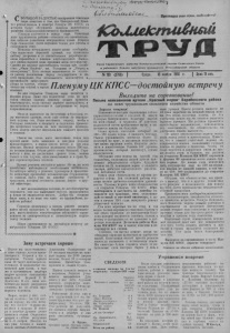 А. 'L, БОЛ ЬШ О Й Р А Д О С Т ЬЮ восприняли советские ^ люди известие о том, что Центральный Комитет решил созвать в декабре Пленум ЦК КПСС , на котором будут обсуждены вопросы дальнейшего развития сельскохозяйственного производства. Пленум состоится в конце года. Почетный долг тружеников района— отметить это знаменатель- ное событие успешным завершением плана второго года семилетки, взять хорошие темпы для работы в следующем году. Неплохо потрудились нынче наши хлеборобы. Они вырастили хороший урожай, что позволило району досрочно и со значительным перевыполнением справиться с планом хлебозаготовок. Выполнил район годовой план продажи мяса государству. Однако по молоку рассчитались только три хозяйства: „Маяк Ильича", нм. Тельмана и „Вперед к коммунизму". Есть полная возможность не остаться району должником перед государством и по этой продукции. Эга возможность заключается в._ органивации заботливого ухода за скотом, обеспечении ему теплой и сытой зимовки. Ко дню открытия Пленума надо подвезти к фермам корма. Даже при недостатке сена, но при таком обилии соломы зимовку можно провести благополучно, если солому заранее заскирдовать и организовать измельчение и сдабривание ее перед скармливанием. Нельзя надеяться на получение в будущем году высокого урожая, если уже сейчас не закладывать основы его. Надо поставить задачу, чтобы к Пленуму очистить и засыпать в надежные хранилища добротные семена на всю посевную площадь. Такая задача вполне посильна для каждого колхоза и совхоза. кл) и л dec Ол -АЧттх? I о с - Щ&Лйтъраа всех стран, соединяйте 1CbUU£jfanU#H£lU T P V f l Орган Карасукского райкома Коммунистической партии Советского Союза и районного Совета депутатов трудящихся Новосибирской области №138 (2788) | Среда, 16 ноября 1960г. | Цена 15коп. Нынче мы очень мало заготовили земли под яровой клин: зяби напахали в два раза меньше прошлогоднего, а паров имеем почти в три раза меньше. Весной придется поднимать около 100 тыс. га весновспашки. Объем работ очень большой. Справиться с ним, не растягивая сроков сева, можно только в том случае, если качественно и в срок будет отремонтирована техника. Время ремонта наступило давно. Но не во всех хозяйствах наблюдается необходимая активность. Хозяйскую заботу о ремонте тракторов и прицепного инвентаря проявляют механизаторы Студеновско- го совхоза. Здесь уже на линейке готовности 9 тракторов, активно готовятся сеялки, плуги и другой инвентарь. А вот механизаторы колхоза„40 лет Октября“не торопятся, они все выжидают чего-то, примеряются и никак не насмелятся начать. Добро бы техники было мало, а то ведь это одно из крупнейших хозяйств района! Горячую поддержку в нашем районе должен найти почин купинских и барабинских механизаторов, выступивших инициаторами областного соревнования за своевременную и качественную подготовку техники. Шире соревнование за достойную встречу декабрьского Пленума Ц К КПСС ! * Зиму встречаем хорошо Нынче мы подготовились к зиме гораздо лучше прошлогоднего. Кормов у нас с избытком. Только одного сена 10 тысяч центнеров заготовили. В подготовке помещений для скота, а также в организации подбора кадров проявил инициативу заведу щи и фермой С. В. Дьяченко. В его лице ж и вотноводы видят разумного хозяина, не по летам проворного человека. Верно, надои у нас сейчас не велики— по 3,5 ли тра 