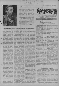 О -р Э ДД]_л.ыЛ1--бQ~*m_ 1 Таким был Энгельс Это был человек, к которому мы обращались при всякого рода затруднениях и совету которого неизменно следовали. Свои энциклопедические познания он всегда предоставлял к услугам своих друзей. Даже специалисты в определенных областях находили, что Энгельс лучше их был знаком с этими вопросами. Так, в вопросах естествознания, о какой бы его отрасли или проблеме не шла речь, Энгельс всегда мог подать новую идею, оказать помощь. Что касается политики—предмета, которым интересовались все его друзья,—то они постоянно обращались к нему за руководством. Д л я него были ясны не только общие принципы, но и мельчайшие подробности экономики, истории, политического движения любой страны. (Из воспоминаний Э. Эвелинга). Великий революционер и мыслитель (К 1 4 0 -л ети ео со дн я р ож д е н и я Ф . Энгельса ) Среди великих людей, имена которых навсегда сохранятся в памяти человечества, рядом с Марксом и Лениным стоит имя Ф. Энгельса— революционера и мыслителя, ближайшего друга К. Маркса. Фридрих ' Энгельс родился 28 ноября 1820 года в Рейнской провинции Германии. Он прожил большую плодотворную жизнь, неустанно борясь за интересы трудящихся. Будучи сыном фабриканта, Энгельс восстал против эксплуататоров всего мира. Добиваясь восьмичасового дня для рабочих, сам он ежедневно работал по четырнадцать-шестнадцать часов. Энгельс был широко и всесторонне образован, хотя никогда не проходил полного курса высшей школы. Энгельс был высок и строен, его движения быстры и уверенны, его речь лаконична и решительна.Держался он очень прямо, что придавало ему сходство с военным. Это был жизнерадостный человек. Каждая его шутка была меткой. У всякого, кто с ним общался, тотчас же создавалось впечатление, что перед ним необыкновенно одаренный человек. Таким, по словам рабочего Ф. Лесснера, представлялся Энгельс его современникам. В молодости Энгельс много читал, изучал иностранные языки,увлекался поэзией и философией, глубоко задумывался над общественными отношениями. Он скоро осознал реакционность монархии, произвол помещиков и капиталистов.В возрасте 24 лет Энгельс написал классический труд «Положение рабочего класса в Англии», жизнь которого изучил непосредственно в рабочих кварталах. 0 рабочих уже в то время писалось немало. Но как отмечал В. И. Ленин, «Энгельс первый сказал, что пролетариат не только страдающий класс...», но н неизбежно борющийся, а следовательно, могущий освободить себя сам. даря встрече с Карлом Марксом, взгляды которого совпали со взглядами Энгельса во всех теоретических областях. Совместная работа над важнейшими проблемами общественного развития скоро выдвинула Маркса и Энгельса на передовую линию разгоревшейся тогда борьбы между трудом и капиталом. ,Они смело выступили как вожди самого революционного класса — пролетариата, как основатели научного коммунизма п руководители международного коммунистического движения. Величайшая заслуга Маркса и Энгельса состоит в том, что они впервые разработали материалистическое понимание истории [и указали рабочему классу правильный путь к освобождению от эксплуатации. Теоретическое наследие Ф. Энгельса огромно. Широко известны его знаменитые философские труды: «Анти-Дюринг», «Диалектика природы», «Людвиг Фейербах» и другие. Большое количество работ Энгельс н